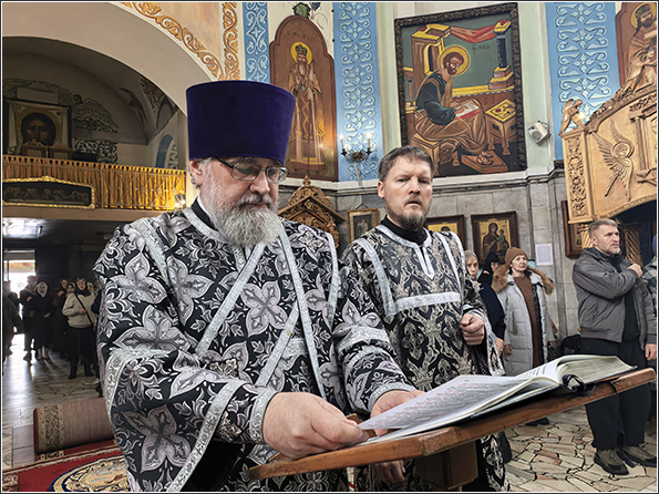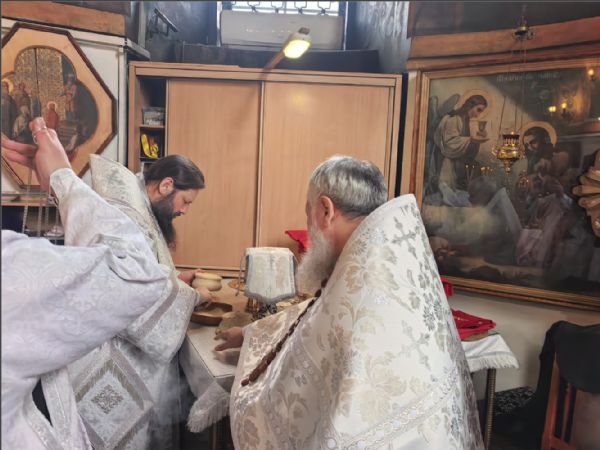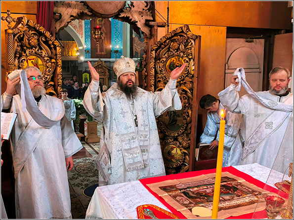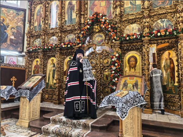 После сугубой ектении была вознесена молитвы о Святой Руси. По завершении службы епископ Гавриил благословил хлеб и вино в воспоминание древнего обычая, когда монахи для подкрепления сил после продолжительных служб принимали эти простые яства, затем была вознесена молитва о мире на Святой Земле, и владыка Гавриил обратился с архипастырским словом к верующим: