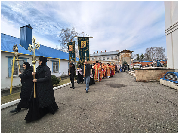 Архипастырю сослужили благочинный Елабужского округа иеромонах Кирилл (Забавнов), благочинный Закамского округа протоиерей Андрей Дубровин, настоятель храма преподобного Сергия Радонежского города Агрыза протоиерей Андрей Ехлаков, настоятель храма преподобного Серафима Саровского города Набережные Челны иерей Сергий Иноземцев, клирики монастыря иерей Даниил Кривов, иерей Илья Павлов, иерей Артемий Танаев. Диаконский чин возглавил протодиакон Дмитрий Половников.