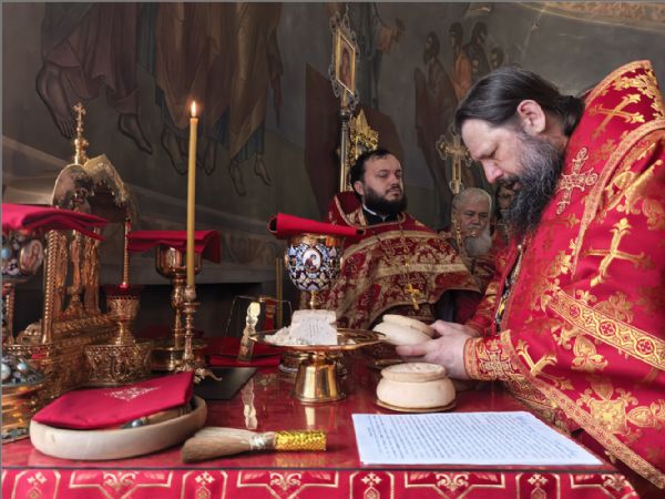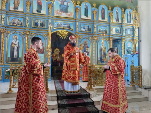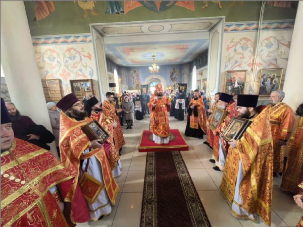 Богослужебные песнопения исполнил архиерейский хор под управлением Натальи Гладышевой. После сугубой ектении была вознесена молитвы о Святой Руси. По запричастном стихе проповедь произнёс иерей Даниил Кривов.