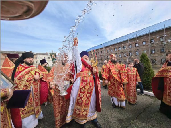 После отпуста Литургии был совершен пасхальный крестный ход.