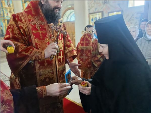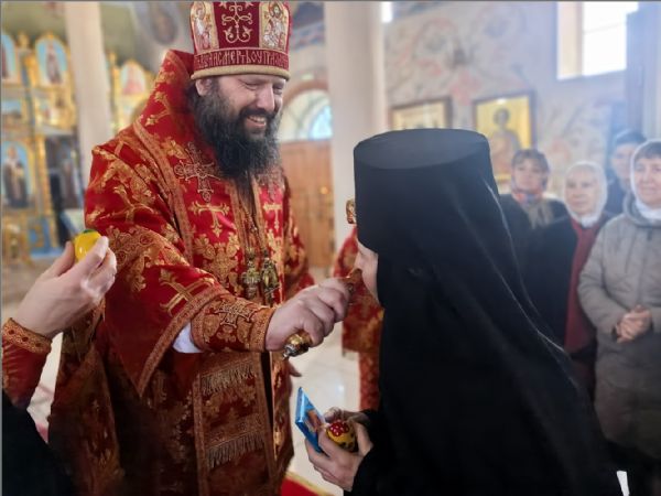 14 апреля 2026 года, во вторник Светлой седмицы, день памяти иконы Божией Матери «Иверской», епископ Набережночелнинский и Елабужский Гавриил совершил Божественную литургию пасхальным чином в храме Казанской иконы Божией Матери Елабужского женского монастыря.