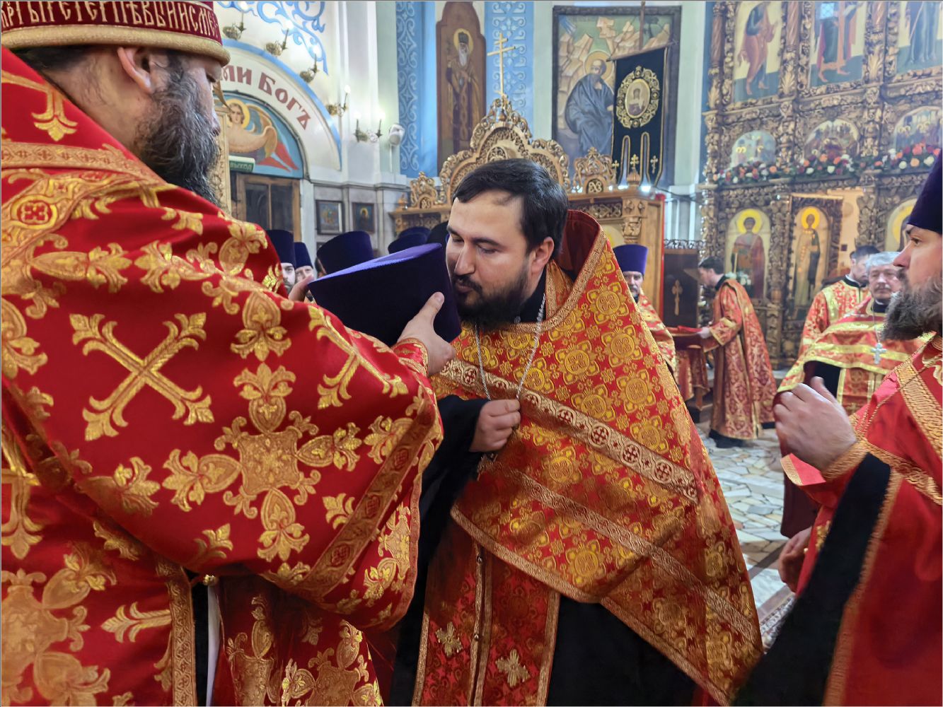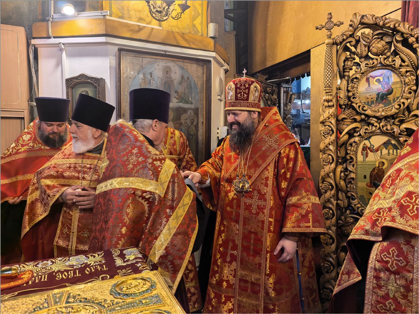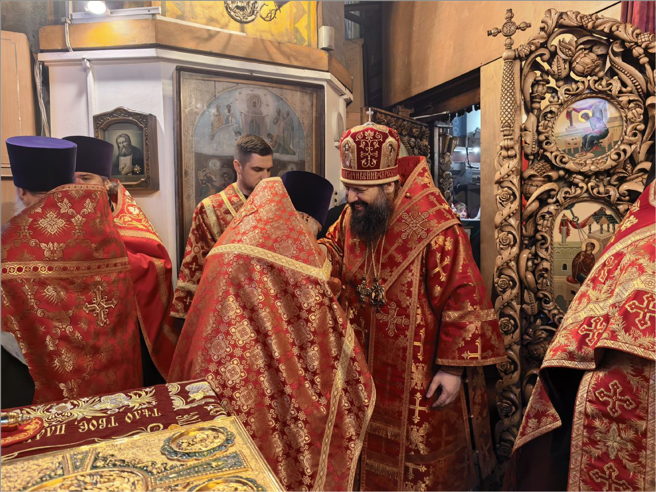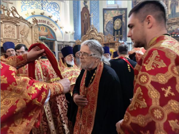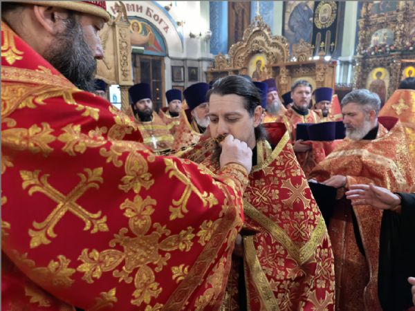 «Владыка святый, мы все находимся под Вашим омофором и святительской молитвой. Позвольте выразить Вам глубочайшую благодарность за то, что Вы неустанно молитесь о нас, поддерживаете, наставляете, вразумляете и утешаете. Этот день вновь свидетельствует о том, что Вы имеете о нас особое попечение и заботу. Каждый, кто пришёл сегодня, услышал от Вас доброе слово и ощутил Ваше отеческое внимание. Каждый получил и наставление, и утешение, а также небольшой памятный подарок. Вы всегда стремитесь одарить нас не просто знаком внимания, но и частицей Вашей заботы и любви.
