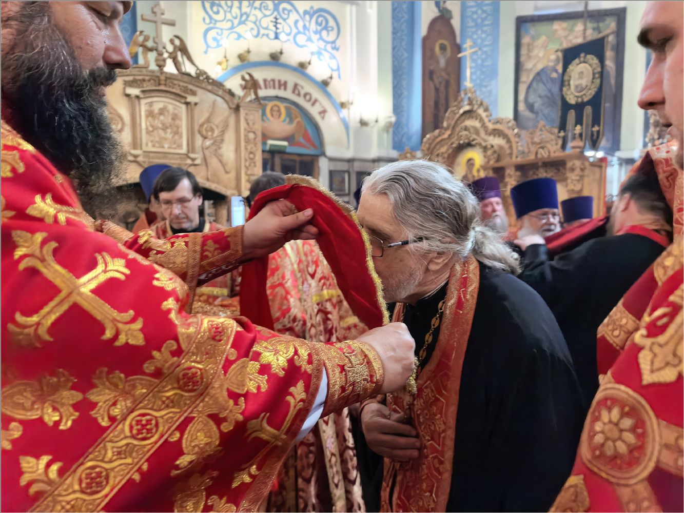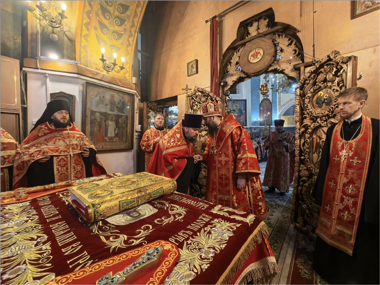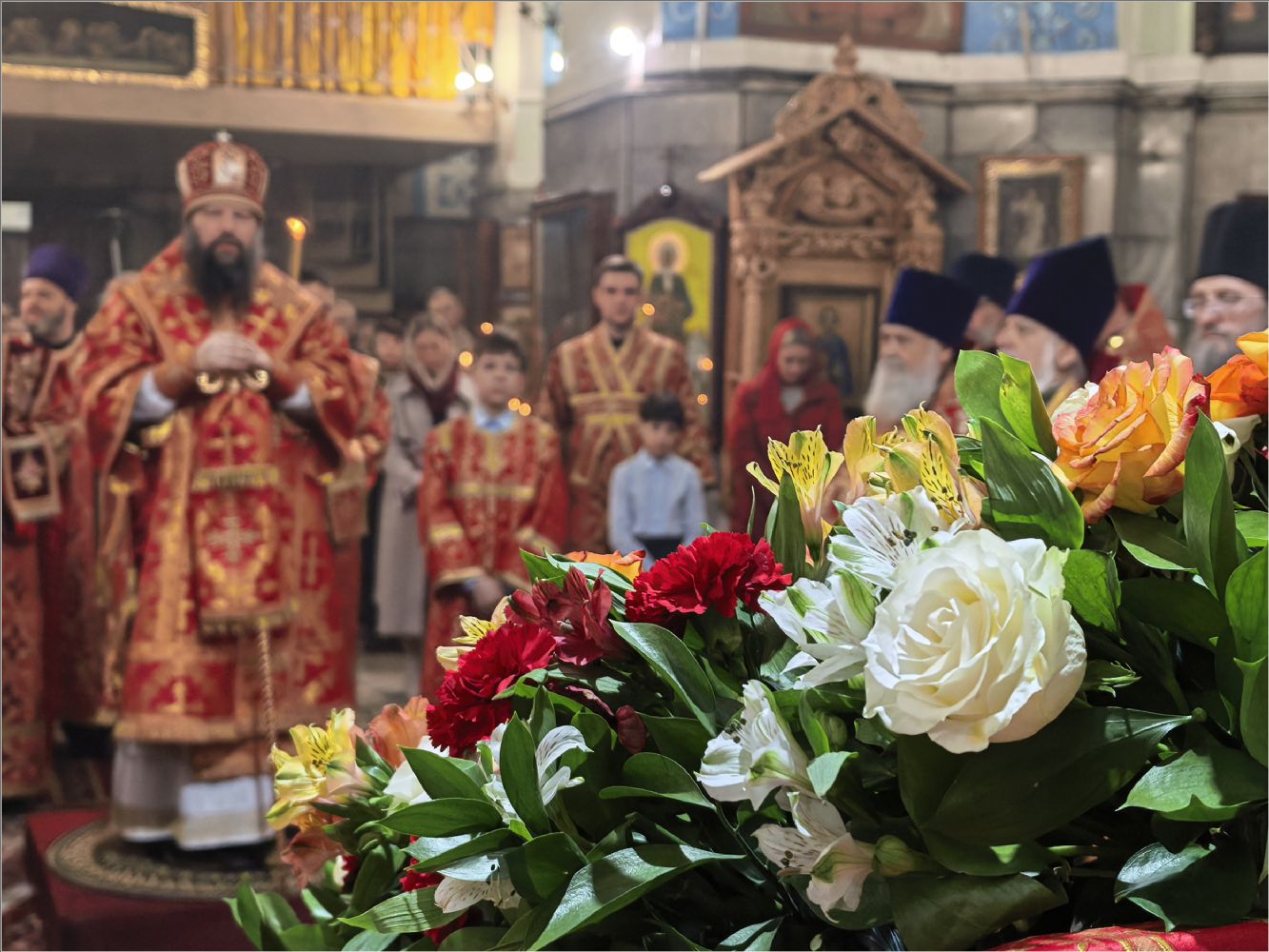 «Владыка святый, мы все находимся под Вашим омофором и святительской молитвой. Позвольте выразить Вам глубочайшую благодарность за то, что Вы неустанно молитесь о нас, поддерживаете, наставляете, вразумляете и утешаете. Этот день вновь свидетельствует о том, что Вы имеете о нас особое попечение и заботу. Каждый, кто пришёл сегодня, услышал от Вас доброе слово и ощутил Ваше отеческое внимание. Каждый получил и наставление, и утешение, а также небольшой памятный подарок. Вы всегда стремитесь одарить нас не просто знаком внимания, но и частицей Вашей заботы и любви.