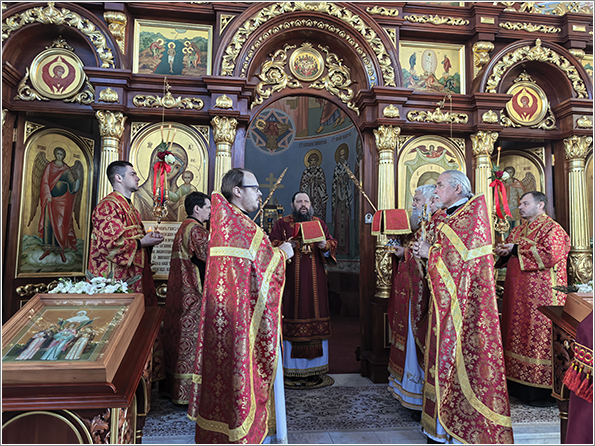 Богослужебные песнопения исполнил смешанный хор храма Казанской иконы Божией Матери под управлением Татьяны Вылку. После сугубой ектении была вознесена молитвы о Святой Руси. По запричастном стихе проповедь произнёс иерей Александр Макариков.