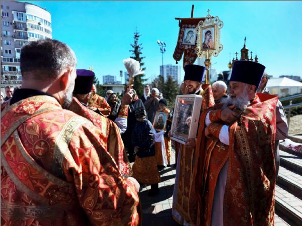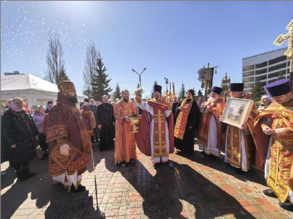 После отпуста Литургии был совершен пасхальный крестный ход.