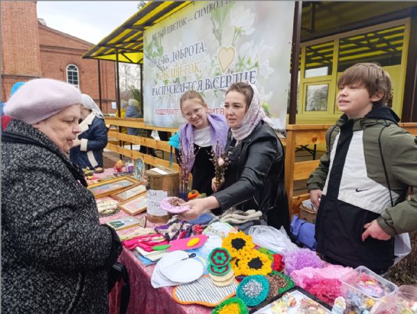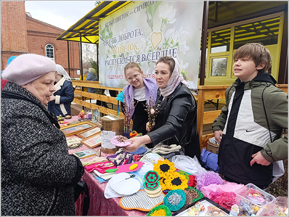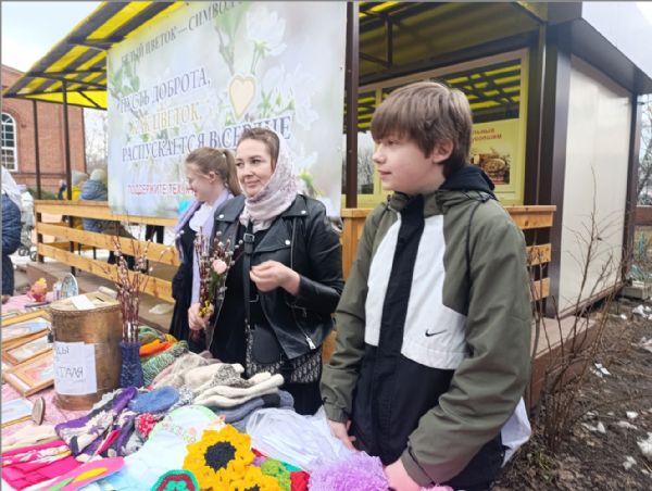 5 апреля в день Вербного воскресенья юные спасатели приняли участие в акции «Белый цветок». Ребята изготовили поделки и сами предлагали их прихожанам на ярмарке за посильное пожертвование. Собранные средства пойдут на нужды Луганского госпиталя.
