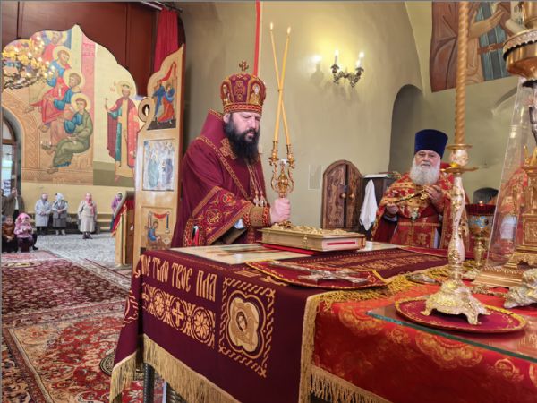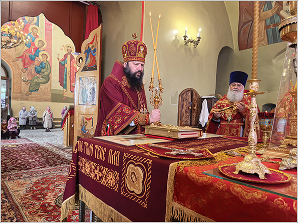 После сугубой ектении была вознесена молитва о Святой Руси. С проповедью по запричастном стихе к верующим обратился иеромонах Кирилл (Забавнов).