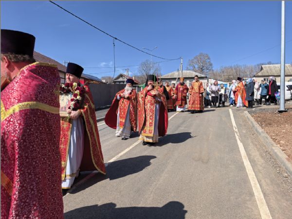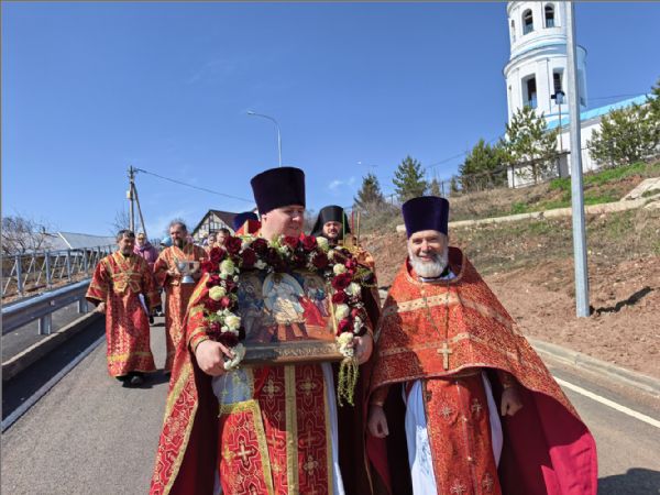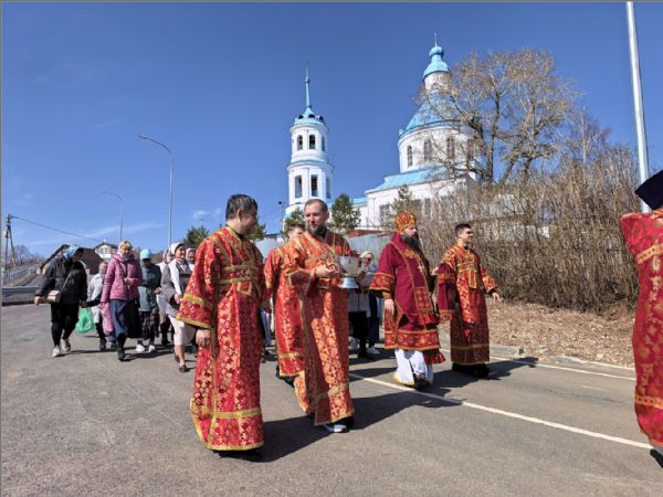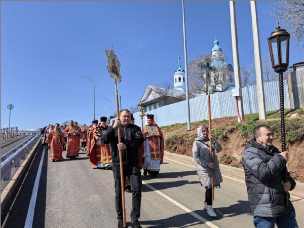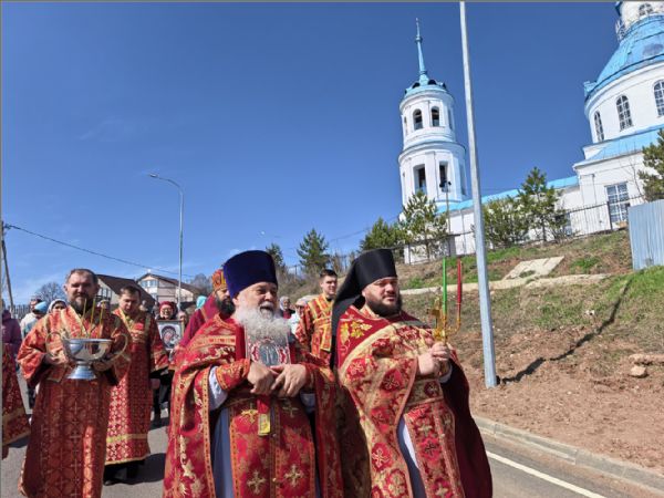 После отпуста Литургии был совершен крестный ход на источник с пением Пасхального канона. На источнике владыку встретил глава Менделеевского района Роберт Искандаров. Глава поздравил епископа Гавриила с праздником.