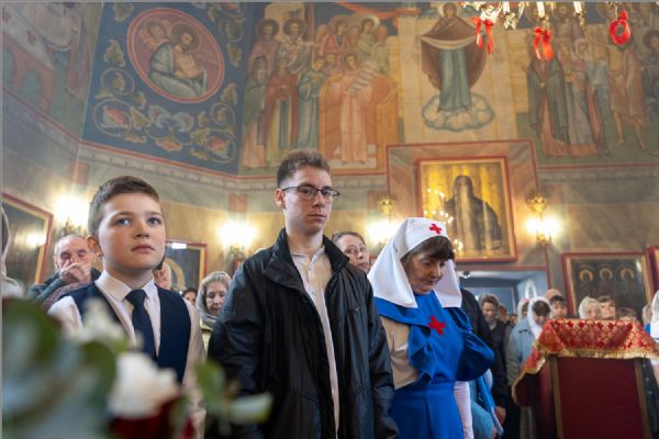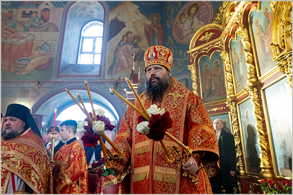 На мирной и сугубой ектениях были вознесены молитвы о Российском воинстве и о мире. Часть молитвословий возносились на кряшенском языке. По запричастном стихе проповедь произнёс игумен Никодим (Шушмарченко).