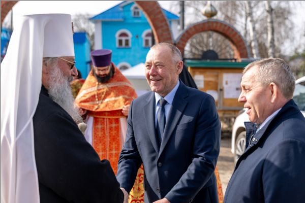У входа в храм владыку Кирилла приветствовали глава Мамадышского муниципального района РТ Вадим Никитин и депутат районного совета Николай Егоров.