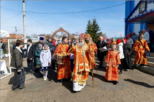 В завершение богослужения духовенство и миряне совершили крестный ход вокруг храма.