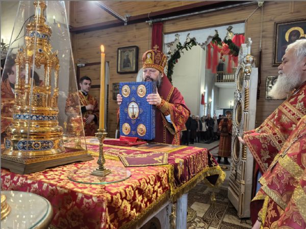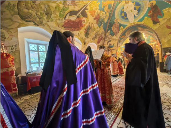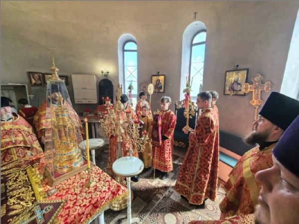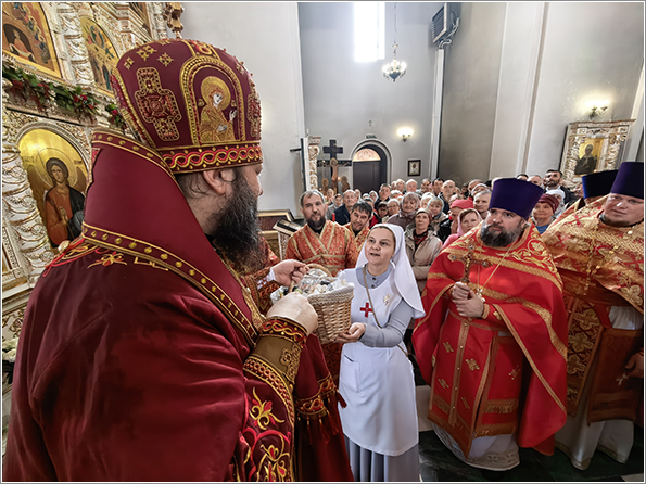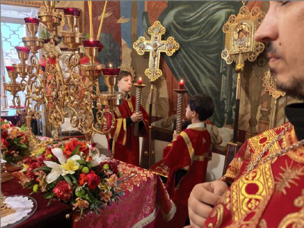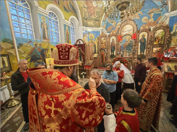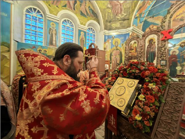 Песнопения богослужения исполнил хор храма под управлением Татьяны Вылку. На Литургии на мирной и сугубой ектениях были вознесены молитвы о Российском воинстве и о мире.