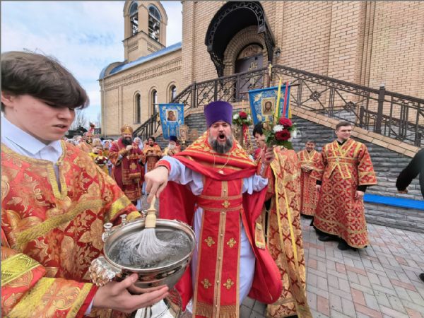 После службы вокруг храма был совершен крестный ход, который продолжил ряд крестных ходов, совершавшихся всю Светлую седмицу.