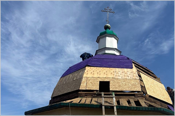 В Иоанно‑Предтеченском храме продолжается масштабный ремонт кровли — важное дело по сохранению духовного наследия для будущих поколений. С 2 марта 2026 года, после молебна на начало работ, специалисты выполнили ряд важных этапов: демонтировали старое покрытие кровли основного здания и куполов Алексеевского и Никаноровского приделов, частично заменили прогнившую деревянную обрешётку, осуществили монтаж ОСП (15 мм) и укладку подкладочных ковров, выполнили высотные работы по замене кровли купола колокольни, заменили навес над входной группой, уложили мягкую черепицу, установили водосточную систему и обшили карнизы, провели демонтаж покрытия основного купола, уложили двойное ОСП и покрыли мягкой черепицей.