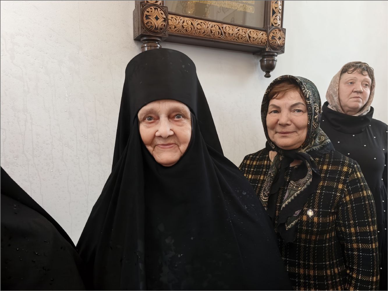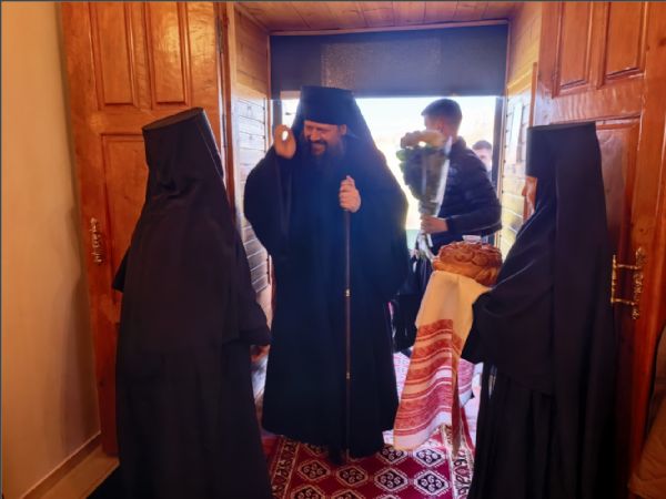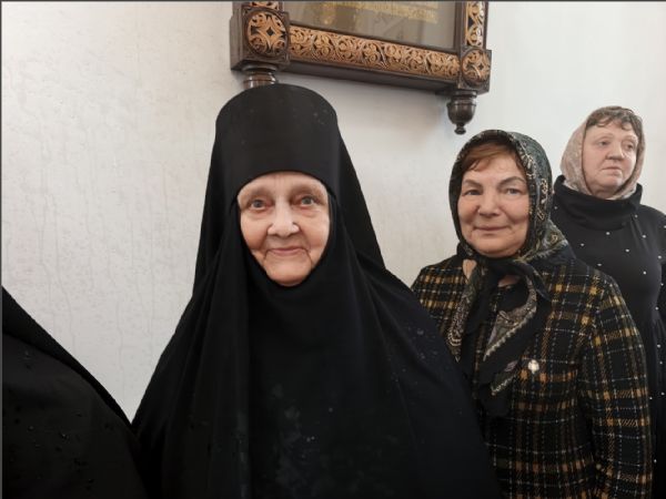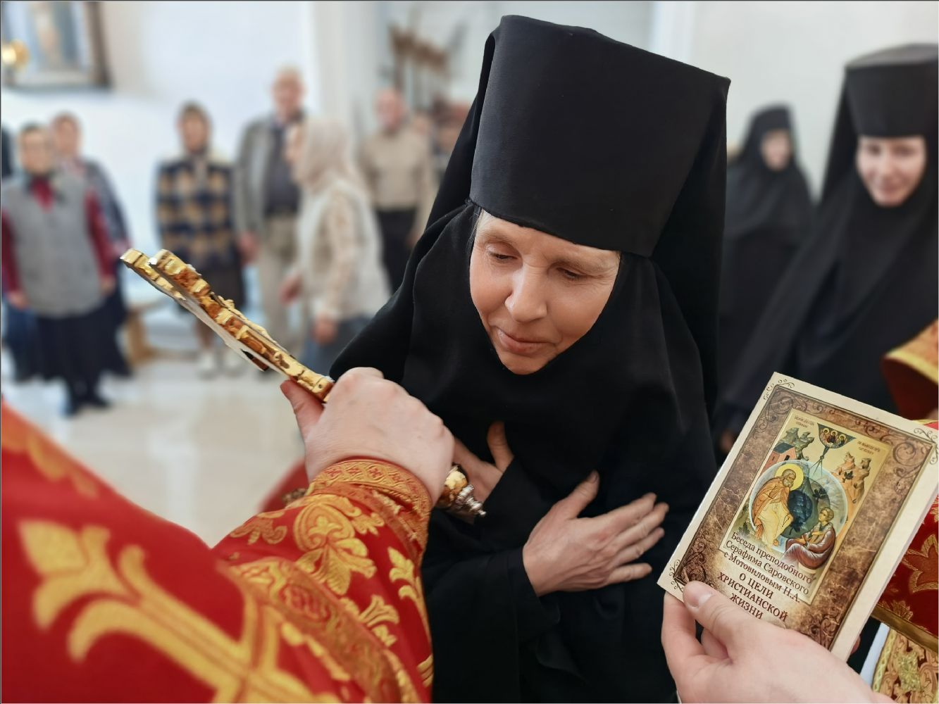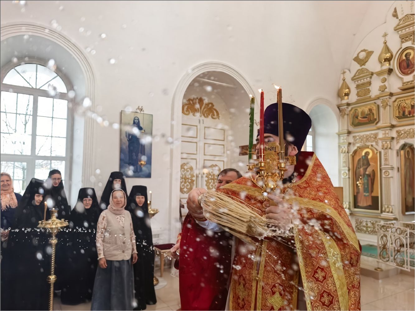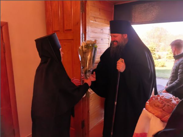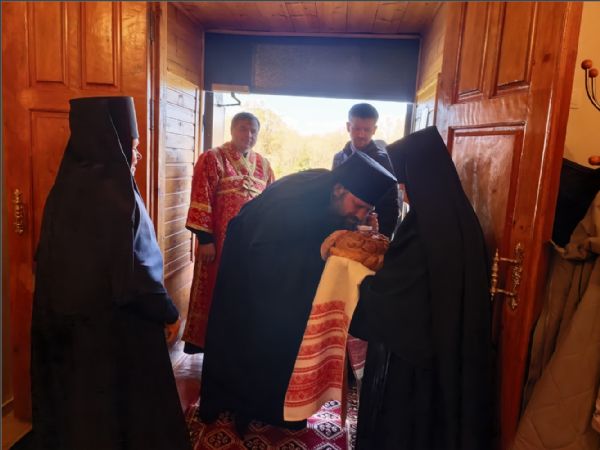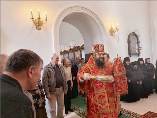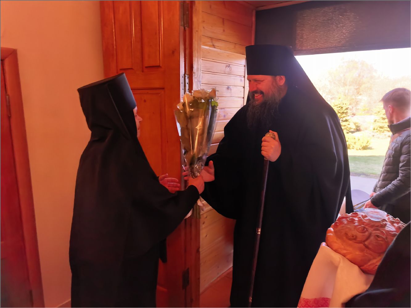 «Дорогие сёстры, прежде всего — дорогая матушка, сёстры обители, наши труженики и все, кто любит Господа и служит Ему. Сегодня мы собрались в этом тихом, поистине отшельническом скиту — месте, где особенно ощущается дух уединения и молитвы. И весьма уместно, что именно сегодня, в день памяти преподобных Зосимы Соловецкого и Александра Свирского, мы совершаем здесь богослужение. Это даёт нам возможность хоть немного почувствовать себя на месте этих великих подвижников, проникнуться их духовным опытом.