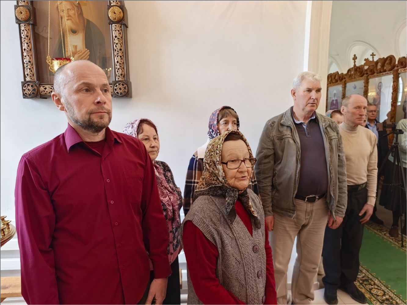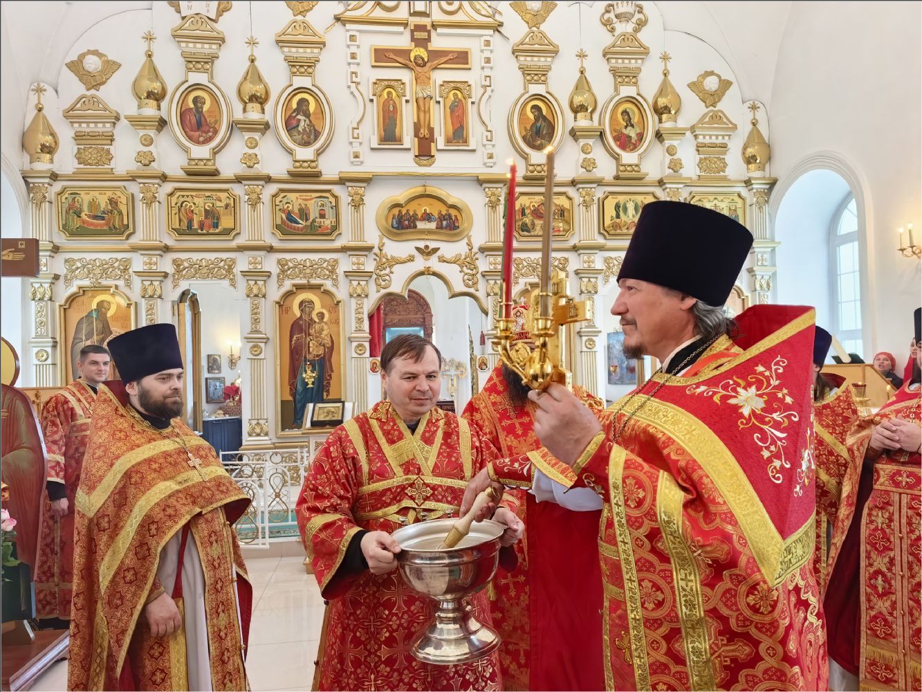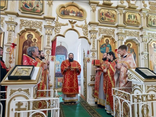 На мирной и сугубой ектениях были вознесены молитвы о Российском воинстве и о мире. Проповедь по запричастном стихе произнес иерей Артемий Танаев.