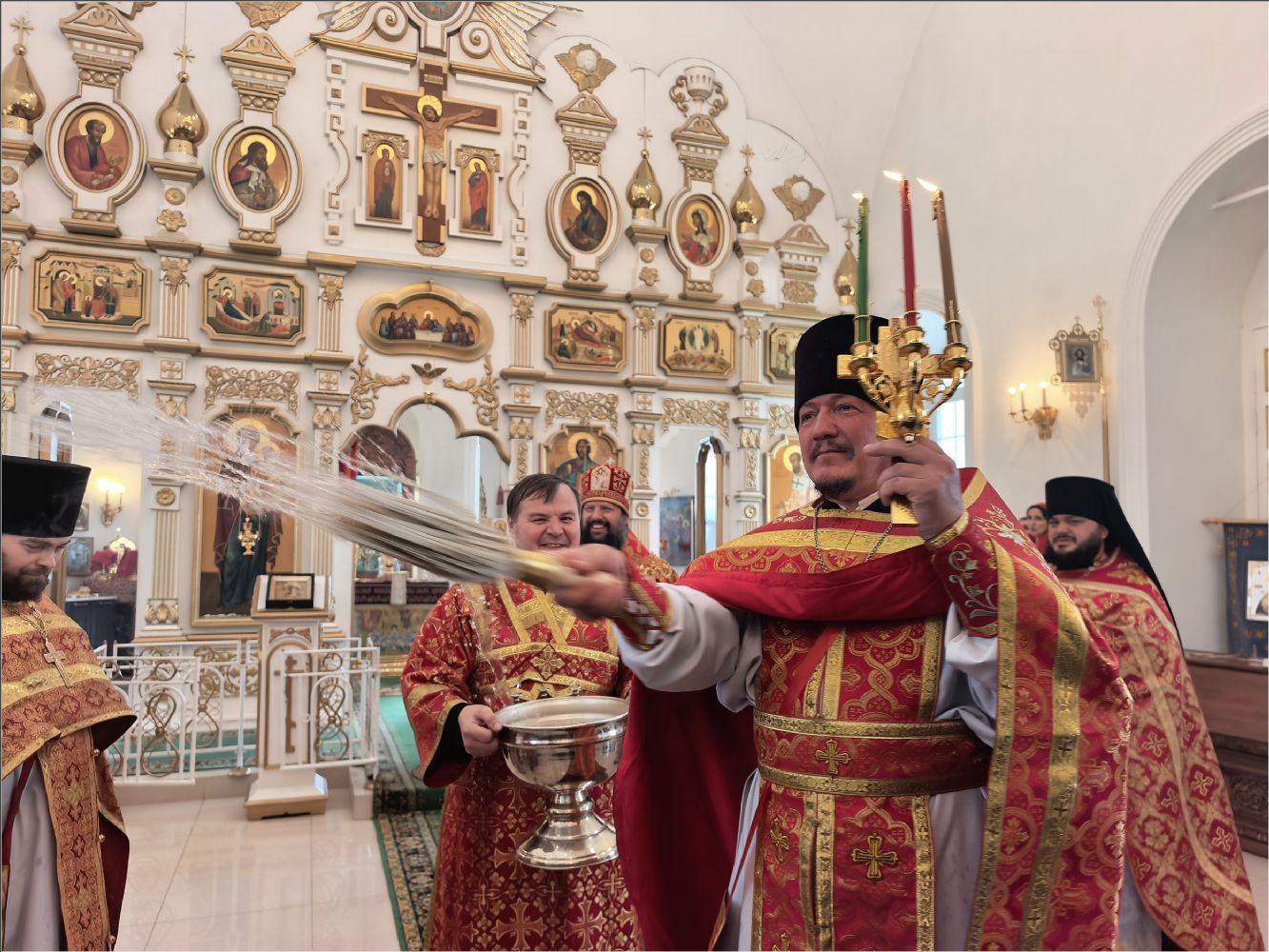 После отпуста Литургии был совершен краткий пасхальный молебен.