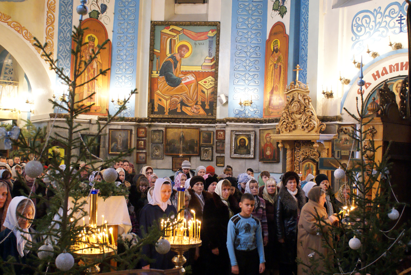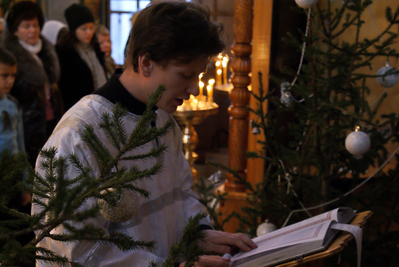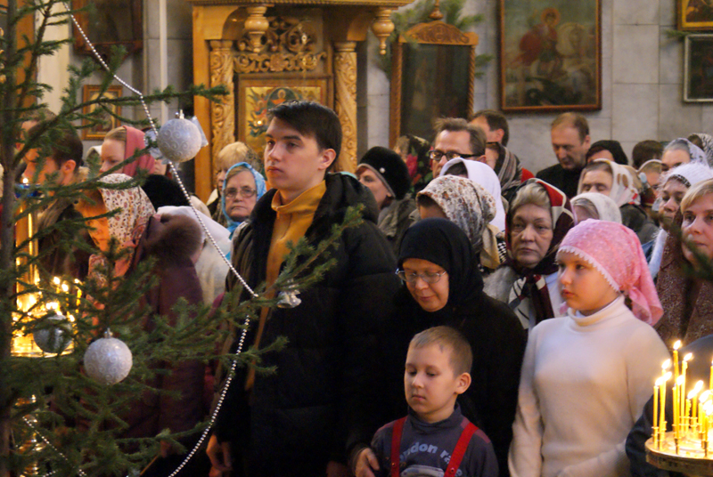 За поздним богослужением молился настоятель собора протоиерей Андрей Дубровин и сотни верующих. После евангльского чтения служащий священник иерей Георгий огласил Рождественское послание Святейшего Патриарха Московского и всея Руси Кирилла архипастырям, пастырям и всем верным чадам Русской Православной Церкви.