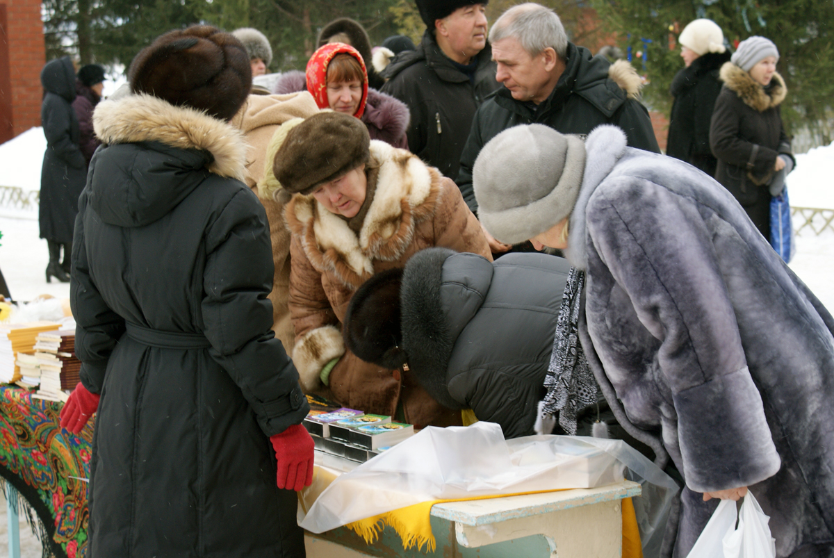 Во дворе храма, утром 19 января социальный отдел организовал традиционную праздничную благотворительную ярмарку. Прихожане нашего храма и взрослые, и дети активно помогали собирать средства на нужды детей-инвалидов, детей сирот, многодетных семей, одиноких стариков.