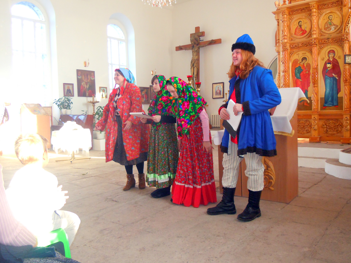 «Итак, идите, научите все народы», – заповедал нам Господь. И для взрослых, и для детей, совершивших поездку в Новотроицкое, это не просто отрывок из Евангелия, а ключевая цель – миссионерство, а также ценный обмен опытом. Одной из тем мероприятия стали колядки – рождественские обрядовые песни. Чем отличаются христославные от посевных колядок? Как колядовали в старину? Чтобы лучше разобраться во всех этих тонкостях ребята показали небольшое театрализованное представление о христославах, за чем с интересом наблюдали зрители. Следующей части встречи была посвящена беседа о значении выражения «хлеб насущный», которую провел преподаватель воскресной школы нашего храма Сергей Железняк. В ходе нее был показан отрывок из фильма «Евангелие от Иоанна», повествующий о земной жизни Иисуса Христа от его встречи с Иоанном Крестителем и Крещения до явления ученикам. В это время дети с преподавателями воскресной школы прогулялись по деревне и порадовали местных жителей подарками и рождественскими колядками, возвещая всем живую веру во Христа.