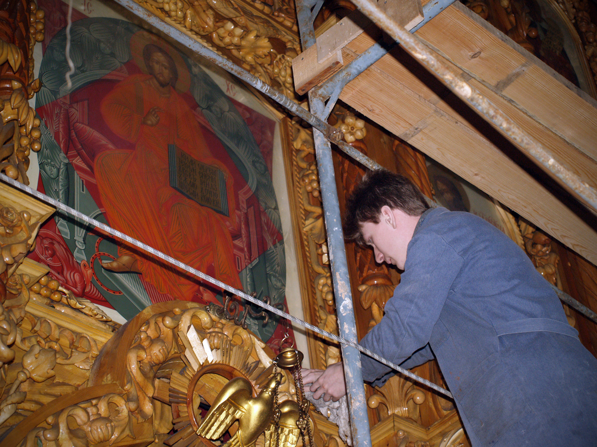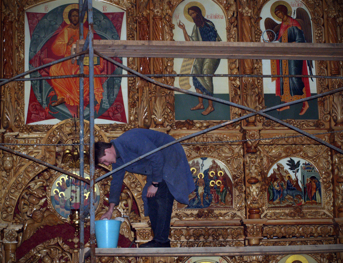 Пока одна служба завершилась, а другая еще не началась, прихожане и работники храма зашуршали тряпочками по иконостасам, стенам, лампадкам и прочей утвари. Успеть убраться нужно на этой неделе – следующая будет посвящена молитвам, а к празднику Пасхи храм должен предстать во всем великолепии.