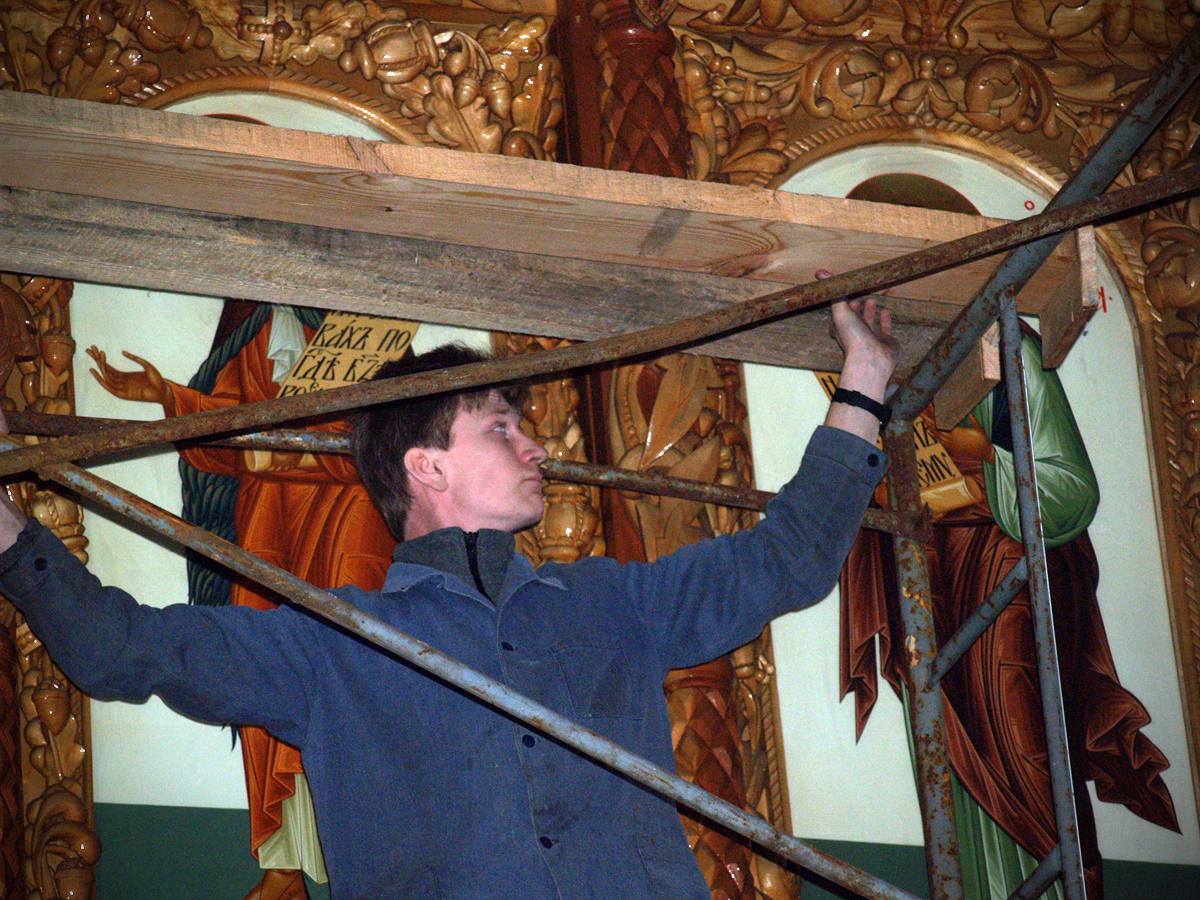 Копоть от тысяч маленьких свечей целый год поднимается к куполу храма. Но к работе на высоте женщин не допускают – слишком опасно. Это – удел мужчин.