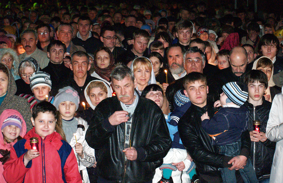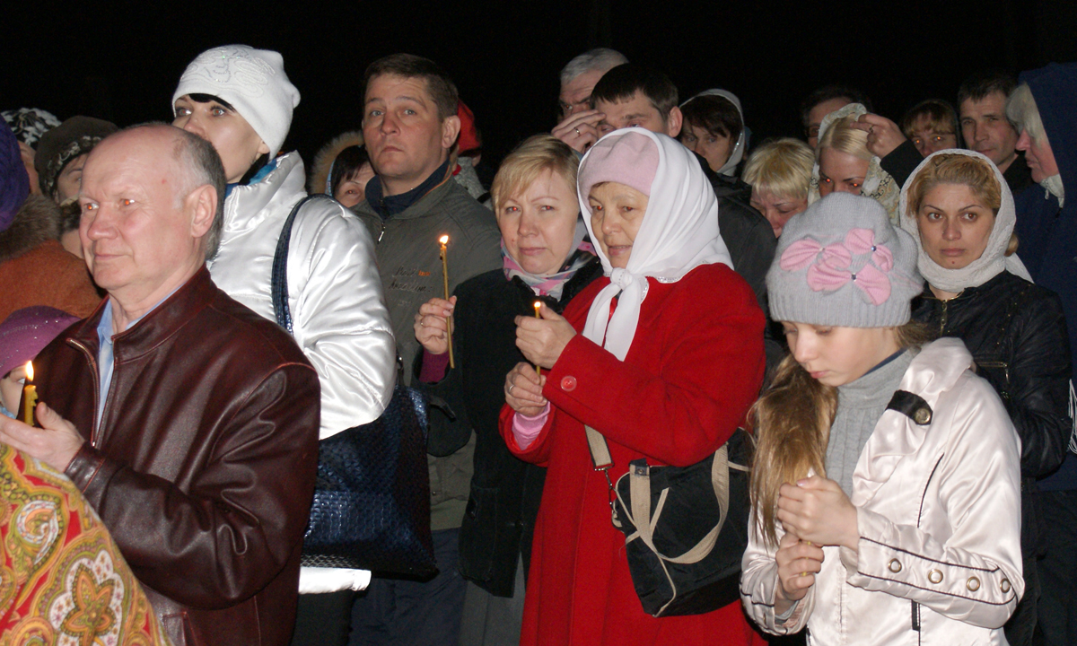 Тысячи зажженных свечей, иконы и хоругви, молитвенная радость на лицах людей – так ночью под непрерывный трезвон колоколов крестным ходом открывалось торжественное Пасхальное богослужение в Боровецком храме. Остановившись перед дверями храма, как перед входом в пещеру Гроба Господня, настоятель храма и священнослужители трижды спели радостный пасхальный тропарь: «Христос воскресе из мертвых, смертию смерть поправ и сущим во гробех живот даровав». С этой радостной вестью молящиеся вошли в храм, и за Пасхальной утреней последовала Божественная литургия и освящение артоса – особого хлеба с изображением Креста или Воскресения Христова.
