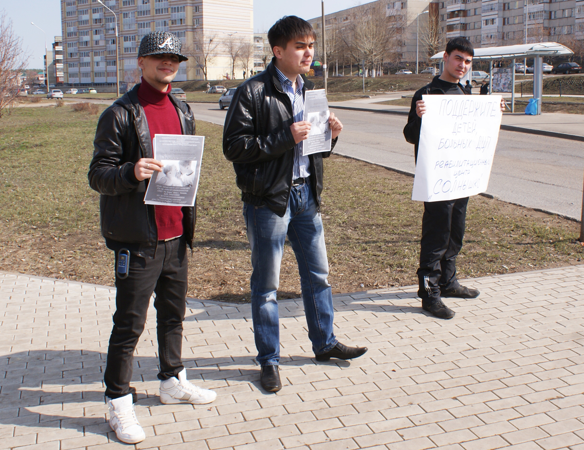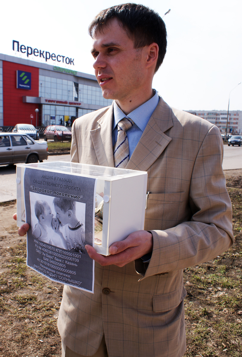 На этот раз продолжался сбор денег на велотренажер для Карины Рахманкуловой, страдающей ДЦП, для детей-сирот, стариков, инвалидов и одиноких матерей. Но оградой храма акция не ограничилась. К доброму деланию Церкви присоединись представители молодежного центра «Заман» и организация «Волонтер», расположившиеся рядом с храмом с плакатами и кружками для сбора денег.