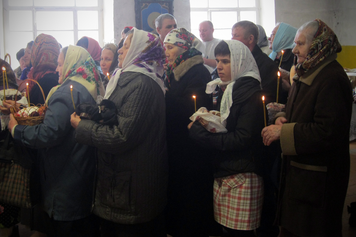 На богослужение в этот светлый праздничный день стеклось множество верующих сельчан, а также жители соседних деревень. После заамвонной молитвы отец Олег совершил освящение артоса, а по окончании богослужения поздравил его участников с Пасхой Христовой и освятил пасхальную снедь.