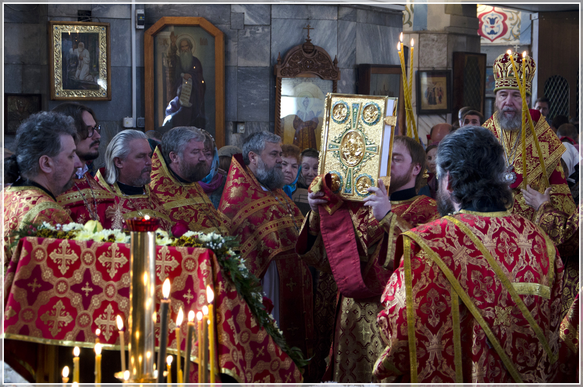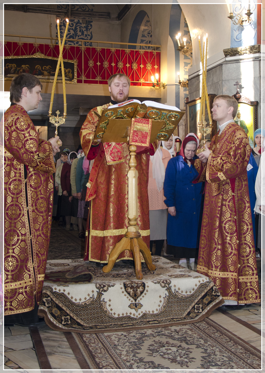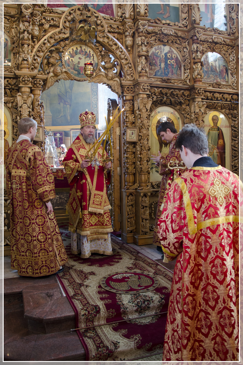 По окончании службы правящим архиереем был отслужен молебен в защиту веры, который совершался в этот день во всех кафедральных соборах России, за здравие Его Святейшества Патриарха Кирилла, предстоятеля Русской Православной Церкви, чтобы Господь укрепил его в стоянии за нашу Церковь и, «чтобы и мы также могли стать подражателями этого стояния за нашу церковь, за нашу Православную Русь. И пусть Господь хранит нашу Церковь от всех искушений до скончания нашего земного бытия. Христос Воскресе!» – закончил богослужение Владыка.