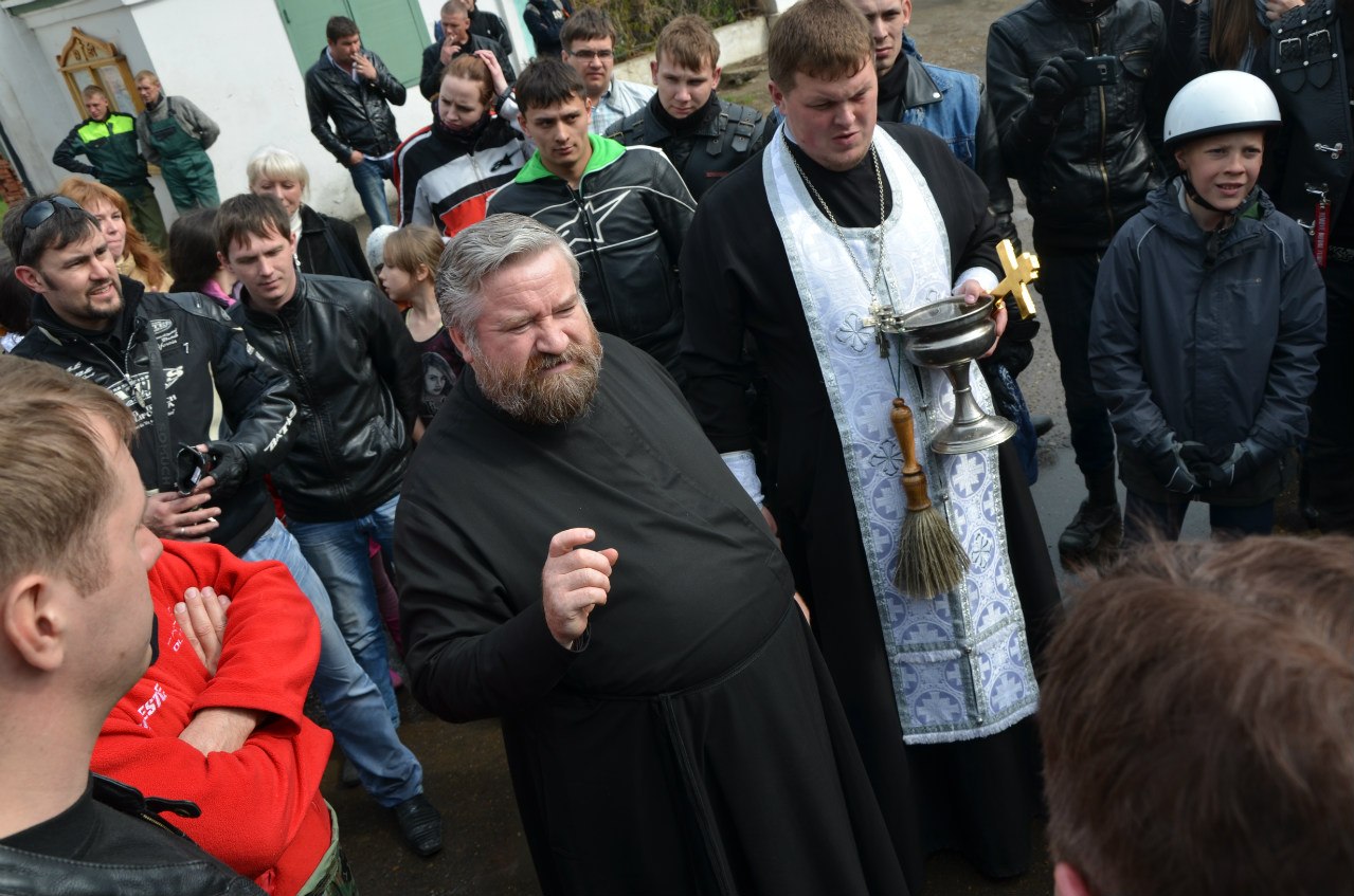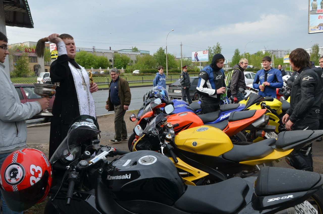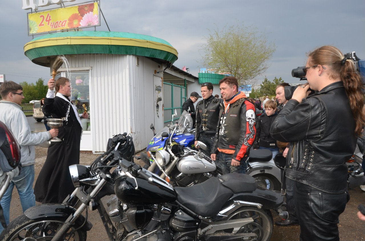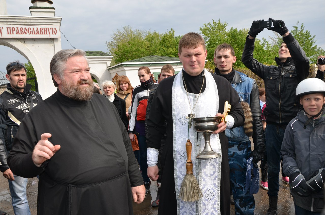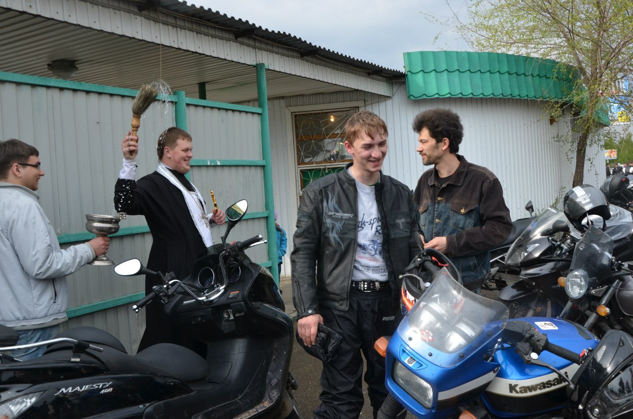 Байкеры приехали в храм за благословением на новый сезон. Иерей Дмитрий Веретнов освящал мотоциклы и над всей шумной толпой разносилось: «Христос Воскресе!». На что байкеры отвечали: «Воистину Воскрес!».