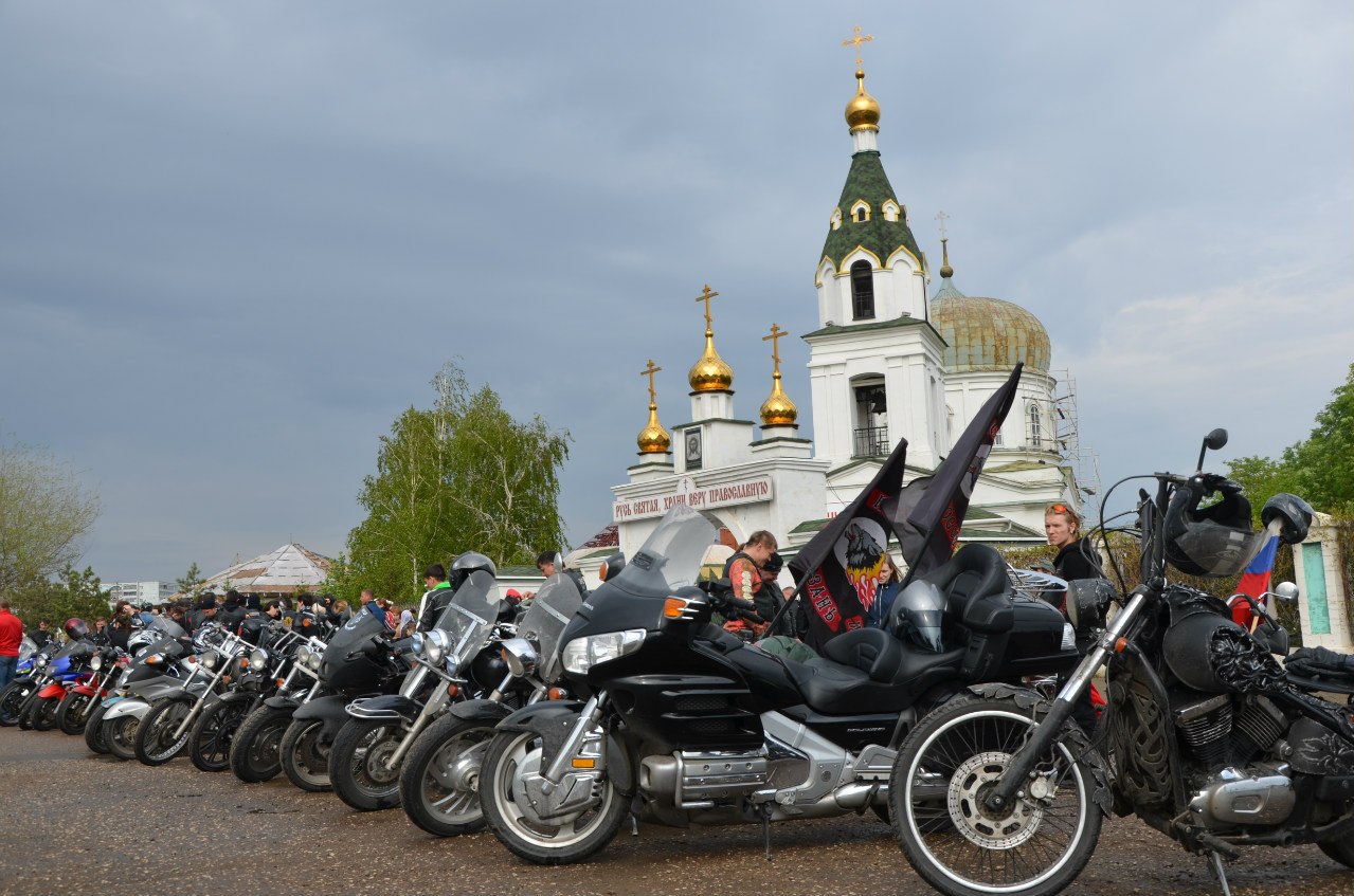 Такое скопление людей, мотоциклов, фотографов, детей на фоне храма давно никто не видел. Проезжающие мимо водители замедляли ход и сигналили байкерам, а автобусы задерживались на остановке.
