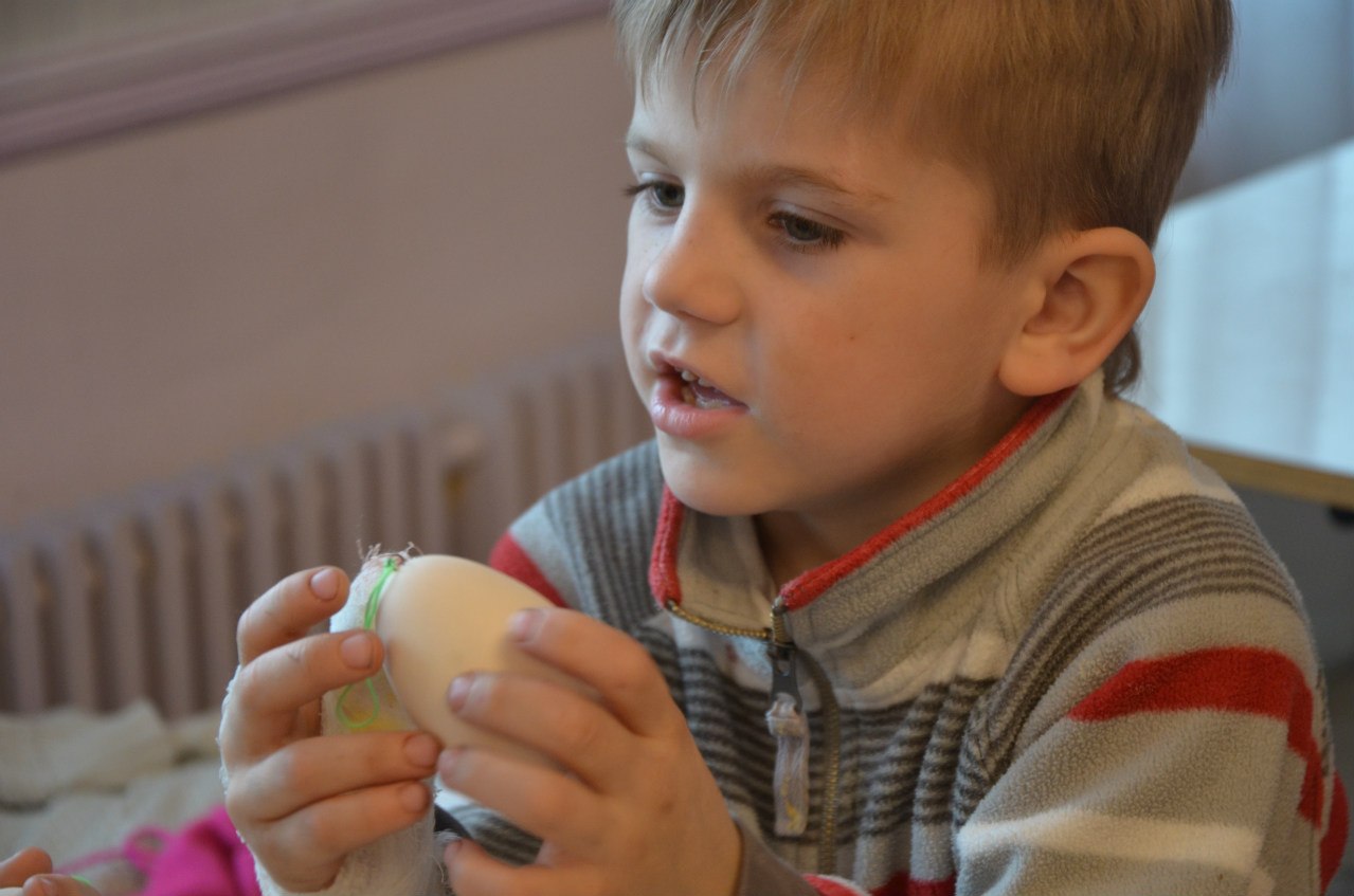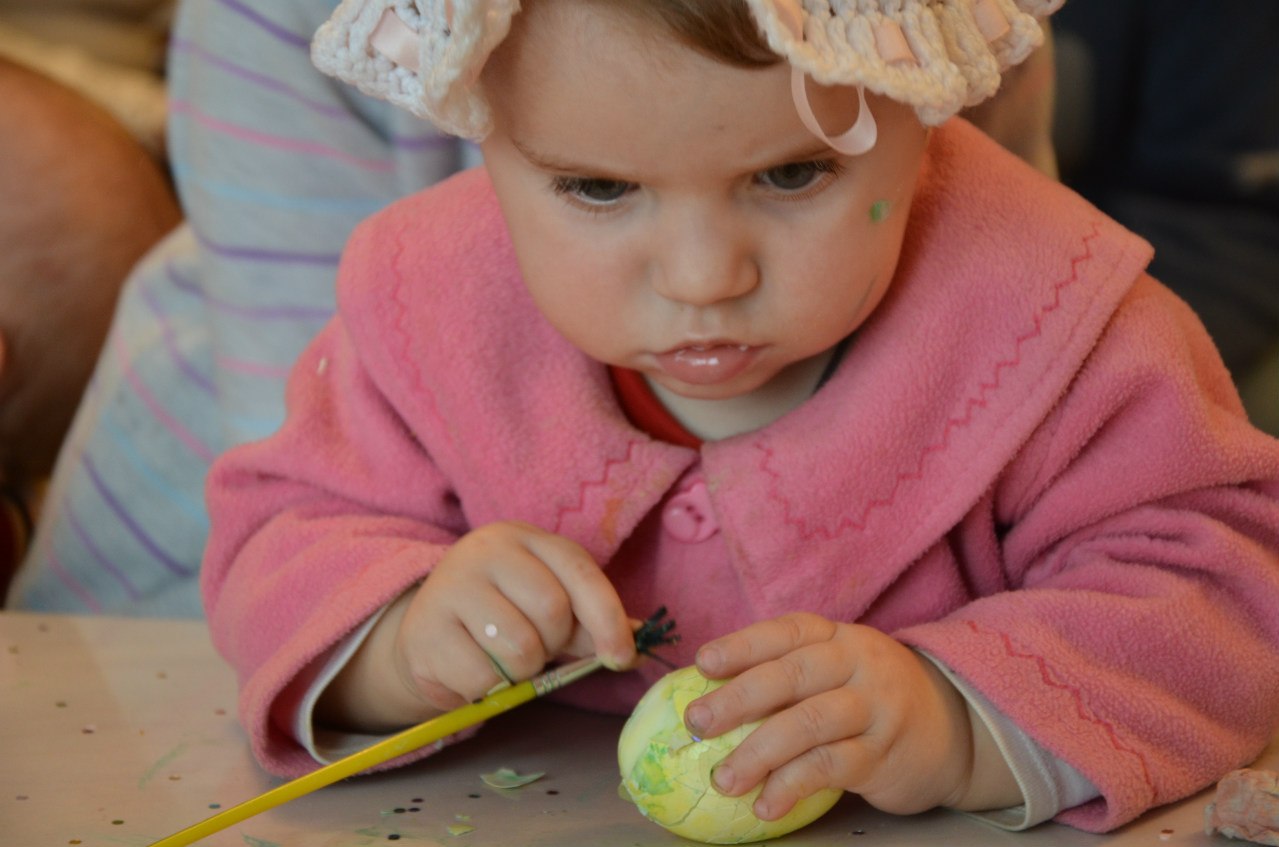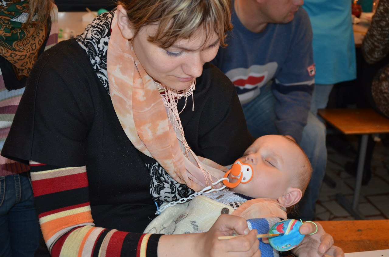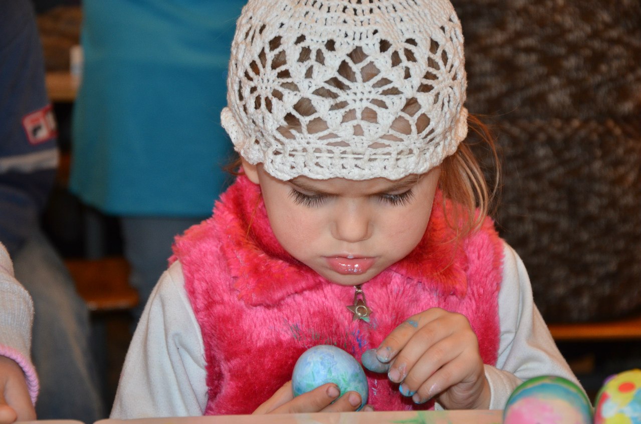 Роспись яиц красками, воском, с использование наклеек; яйца обычные, яйца фарфоровые — все это было сегодня в центре внимания. Росписью увлеклись все: от младенцев и их родителей до учителей Воскресной школы. Особый шик дня — роспись воском. Перегреешь воск — жирная капля, недодержишь на огне — тоже ничего хорошо. Этим мастерством овладели не все, зато все попробовали. В итоге среди пестрого разнообразия конкурсных яиц определить лучшее стало невозможным.