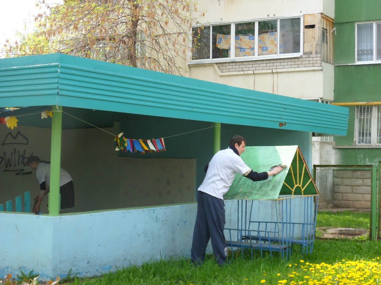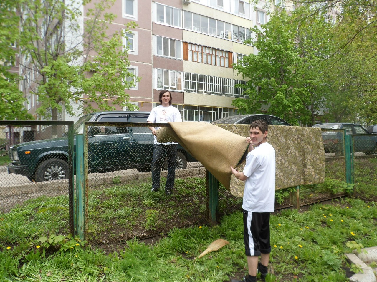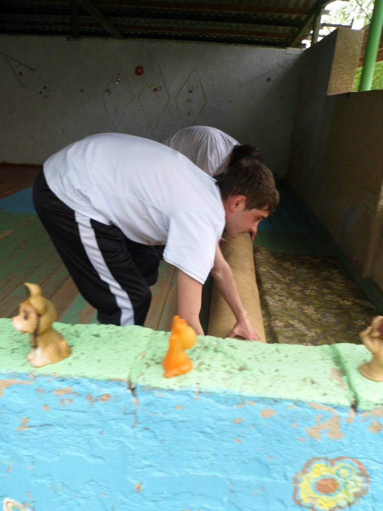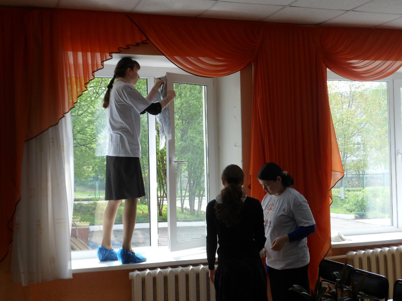 В понедельник 7 мая состоялся очередной трудовой десант православной молодежной группы «Рассвет» Свято-Вознесенского Архиерейского подворья в «Доме ребенка», расположенном в 54 комплексе. Как обычно все собравшиеся подождали распределения работ со стороны завхоза и старшей сестры-хозяйки, после чего приступили к выполнению полученных заданий по уборке здания и веранд на территории. Молодёжные активисты мыли окна и протирали пыль, особое внимание уделялось батареям на тыльной стороне которых за зиму скопилось большое количество пыли, пропылесосили ковры и паласы. Затем ребята и девушки принялись за уборку прогулочных веранд и территории возле них, протёрли влажными тряпками «грибки» на песочницах. При уборке одной из веранд, был обнаружен ковёр, который было решено вытрясти. Полы веранд были также вымыты с особой тщательностью прекрасной половиной молодёжной группы «Рассвет», в этом им помогали и парни.