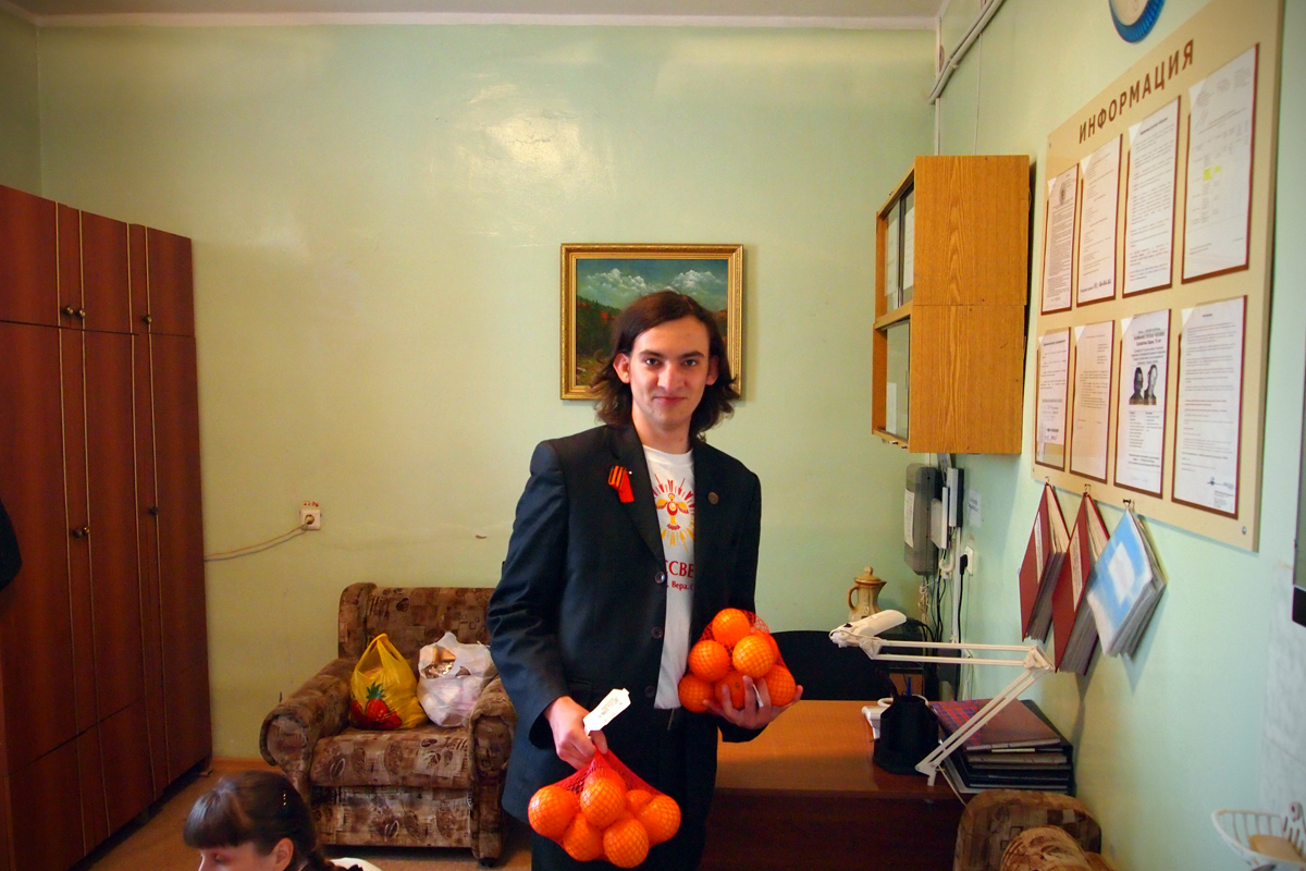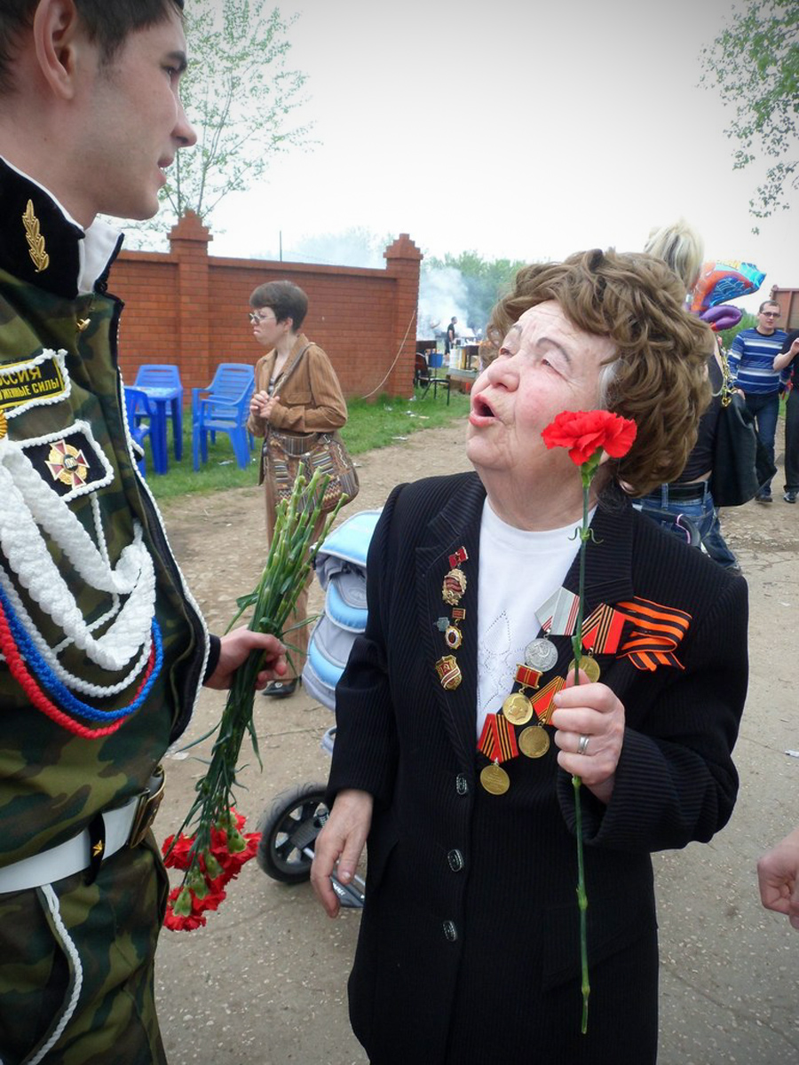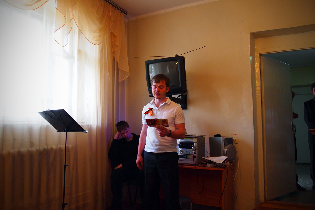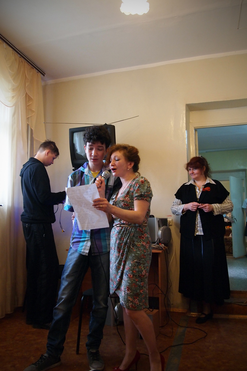 После концерта состоялось праздничное чаепитие для постояльцев «Перекрестка» и вручение подарков. После мероприятия желающие поздравить ветеранов отправились в район стадиона «Строитель». Заранее молодые люди приобрели гвоздики, которые дарили всем ветеранам войны, труженикам тыла и ветеранам труда. Многие из тех, кому были вручены цветы, с искренней улыбкой и счастьем в глазах говорили: «Спасибо, родненькие за то, что вы есть», в ответ звучало немного виноватое: «Не нам спасибо, а вам спасибо за ваши подвиги. За нашу жизнь!»