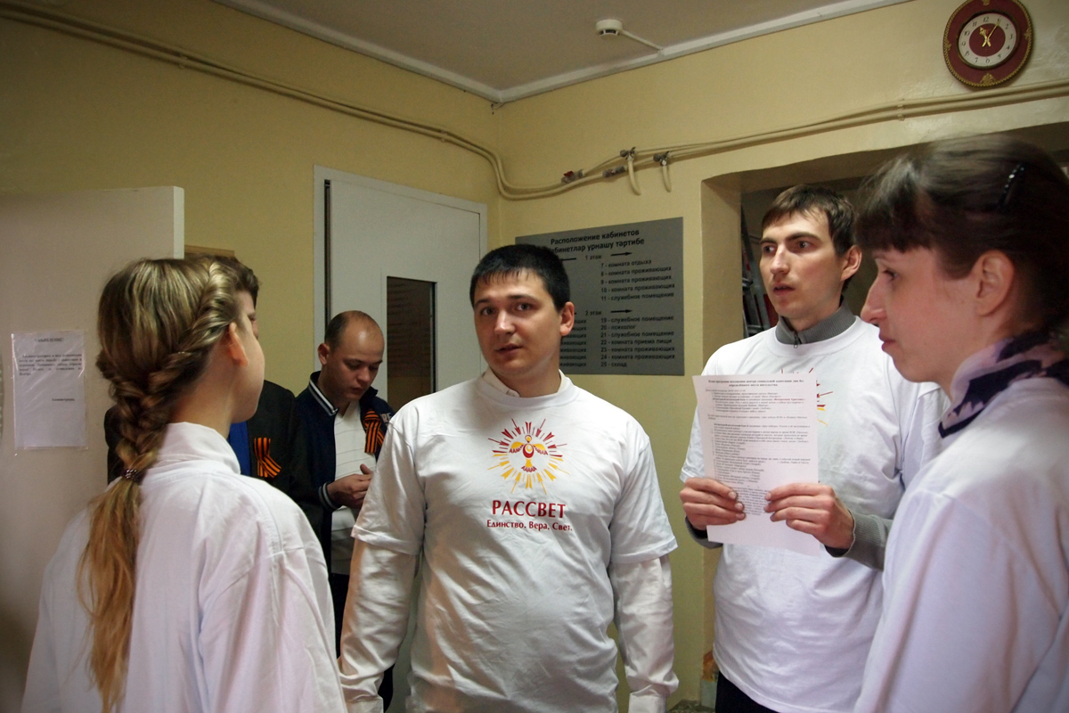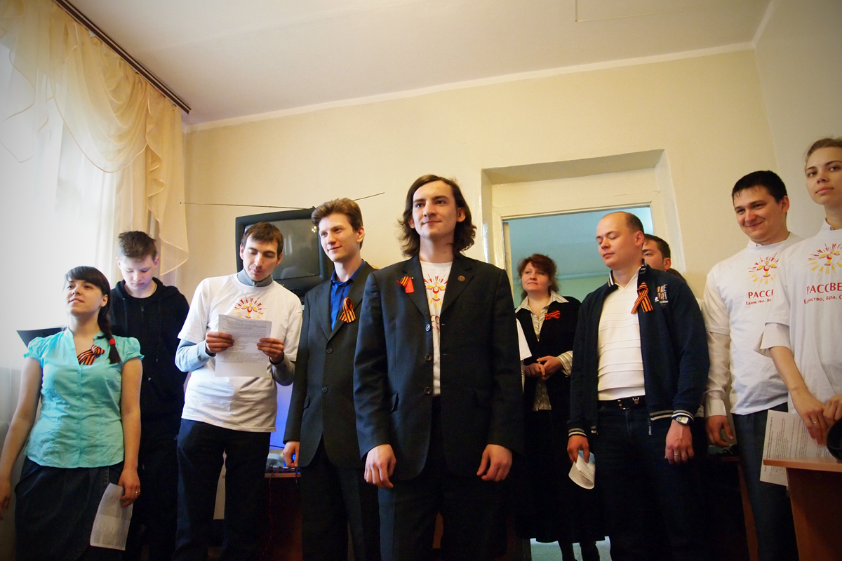 9 мая в день празднования Дня Победы, великого и значимого для нашей страны праздника, молодёжная группа «Рассвет» Свято-Вознесенского Архиерейского подворья выступила с поздравительным концертом в Центре социальной адаптации «Перекрёсток». В программе поздравительного выступления прозвучали песни победы: «Журавли», «Тёмная ночь», «На безымянной высоте», «Тальяночка», «Баллада о красках». Провели викторину посвящённую Дню Победы, всем ответившим были вручены подарки. В программе прозвучали также стихи о Великой Отечественной войне: «В лесу под Можайском», «Карта», «Солдатам Великой Победы», «Безымянный солдат», «Враги сожгли родную хату» и поздравительные частушки под гармошку. В конце выступления все вместе исполнили песню «День Победы».