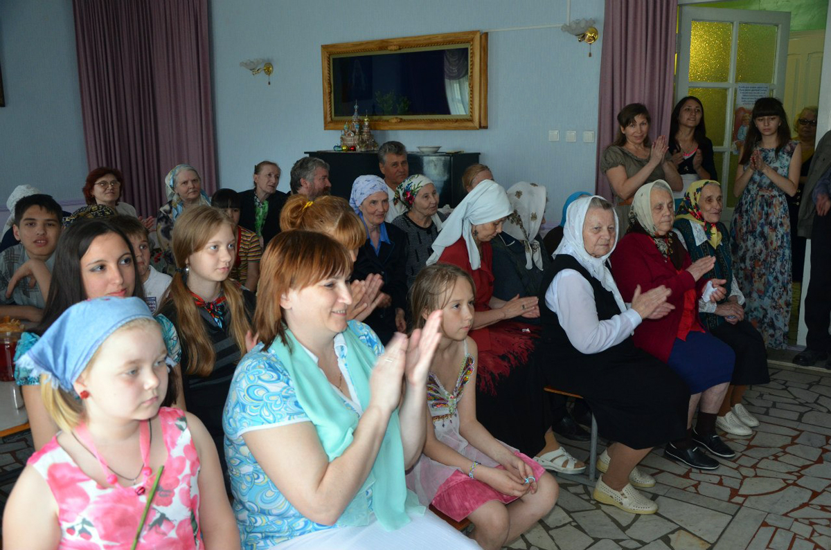Три ветерана — прихожанки храма — получали сегодня поздравления от всего храма. Сегодня уже не та знаменательная дата, но воскресение — самое время для радости. Певчие исполняли песни военных лет. «Смуглянка», «Катюша», «Вечер на рейде» — заставляли подпевать, смахивая слезы. Поздравили свидетелей победы и дети из Воскресной школы храма.