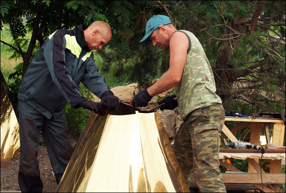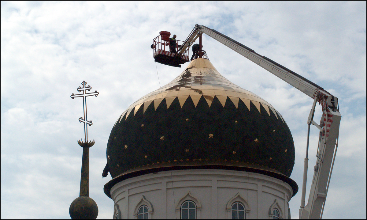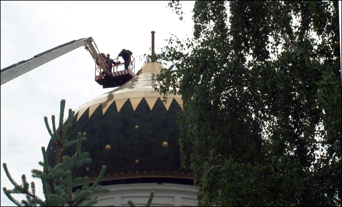 Новый купол обшит нитрид-титаном и мягкой кровлей, а также украшен восьмиконечными звездами. Это поистине историческое событие для храма стало возможным благодаря пожертвованиям и трудам благодетелей и прихожан храма.