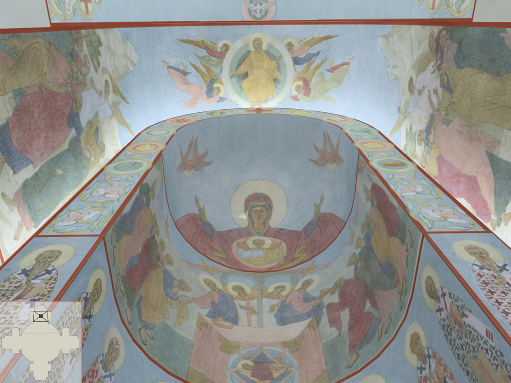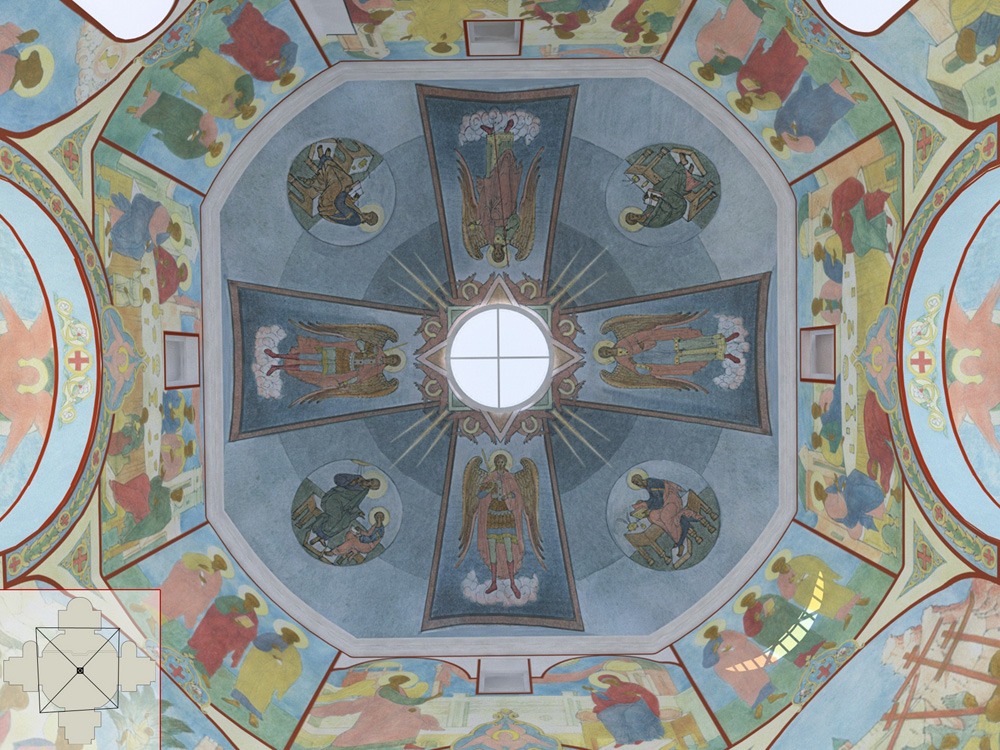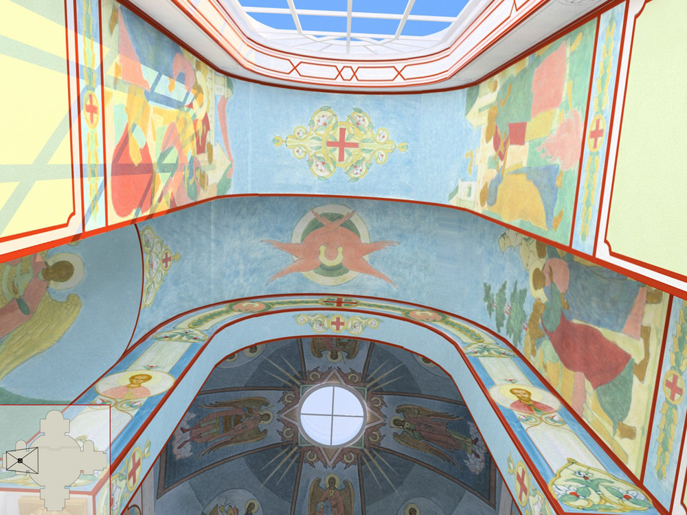 Новую штукатурку будут готовить под роспись сами специалисты из Палеха, они же будут и расписывать стены храма. Вариантов росписи стен существует несколько, роспись храма прп. Серафима Саровского будет произведена красками по штукатурке. Итог работ – роспись всех стен и купола. Очень важно, что все работы будут произведены специалистами одной компании, которые гарантируют качество и подготовительных работ. Если подготовка стен будет выполнена не по технологии, то дорогостоящая роспись может не прослужить свой гарантированный срок, потрескаться, краски могут пожухнуть, потерять свой цвет.