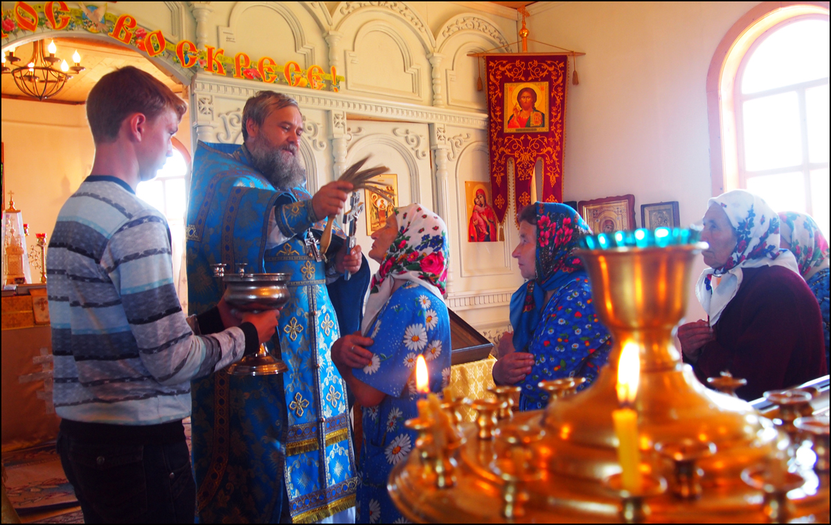 После Литургии был отслужен водосвятный молебен и совершен крестный ход вокруг храма, в котором приняло участие большое количество верующих сельчан. Затем благочинный провел приходское собрание в храме. Как обычно, отец Андрей проверил приходскую документацию, которая оказалась в порядке. Затем гостям была предложена праздничная трапеза в сельской столовой.