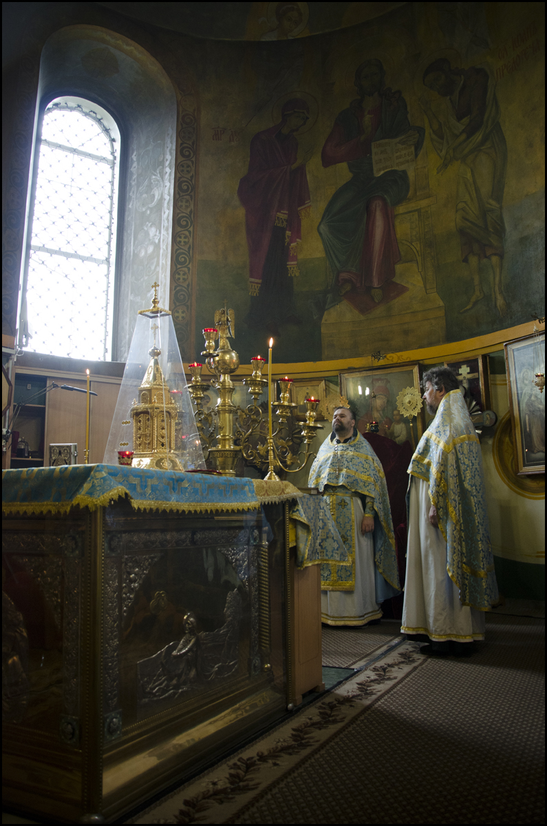 «Всех нас заступи, о Госпоже Царице и Владычице, иже в напастех и скорбех и в болезнех, обремененных грехи многими, предстоящих и молящихся Тебе умиленною душею и сокрушенным сердцем пред пречистым Твоим образом со слезами», – слышался тропарь этого дня в соборе, распеваемый многими прихожанами.