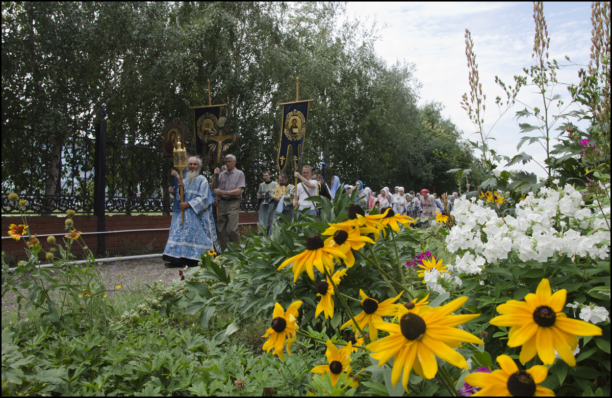 На следующий день была отслужена Божественная Литургия, после которой священнослужителями Свято-Вознесенского собора иереем Олегом Николаевым и иереем Евгением Ступицким был отслужен праздничный молебен, после которого прошел крестный ход. Верующие словно мистически соединились с тем шествием, которое проходило в престольном граде Казани из Богоявленского храма Кремля к месту постоянного пребывания иконы Божией Матери – Казанскому Богородицкому монастырю. Люди шли под открытым небом, неся хоругви и иконы, и славили Пречистую Владычицу, Которая и сейчас невидимо покрывает всех Своим омофором.