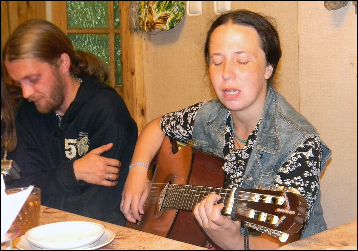Но самым долгожданным на этом чаепитии была музыка. Главным исполнителем встречи стала, уже не раз выступавшая на православных мероприятиях, Елена Ускова. Такие знакомые всем и добрые песни, как «Ветер перемен», «Луч солнца золотого» великолепно вписались в формат встречи. А главное здорово объединили неравнодушных и инициативных молодых ребят.