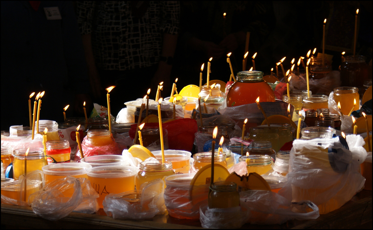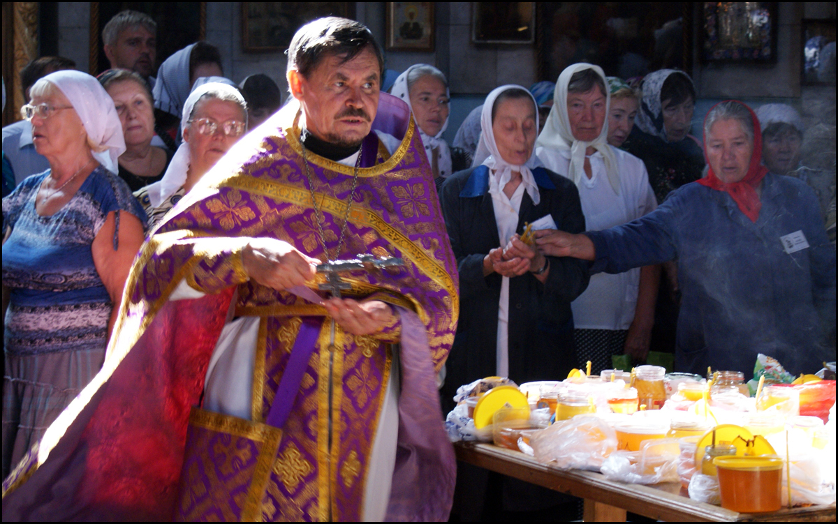 Первый день приурочен к вспоминанию Происхождения Честных Древ Животворящего Креста Господня, поэтому большое количество верующих пришло сегодня в храм на Божественную Литургию испросить благословения Божиего на несение поста и снова вспомнить в молитвах события минувших дней. В народе за этим праздником закрепилось название Медовый Спас, и по принятому ныне в Русской Церкви чину после Божественной литургии состоялось освящение меда. С этого дня благословляется вкушение его нового сбора.