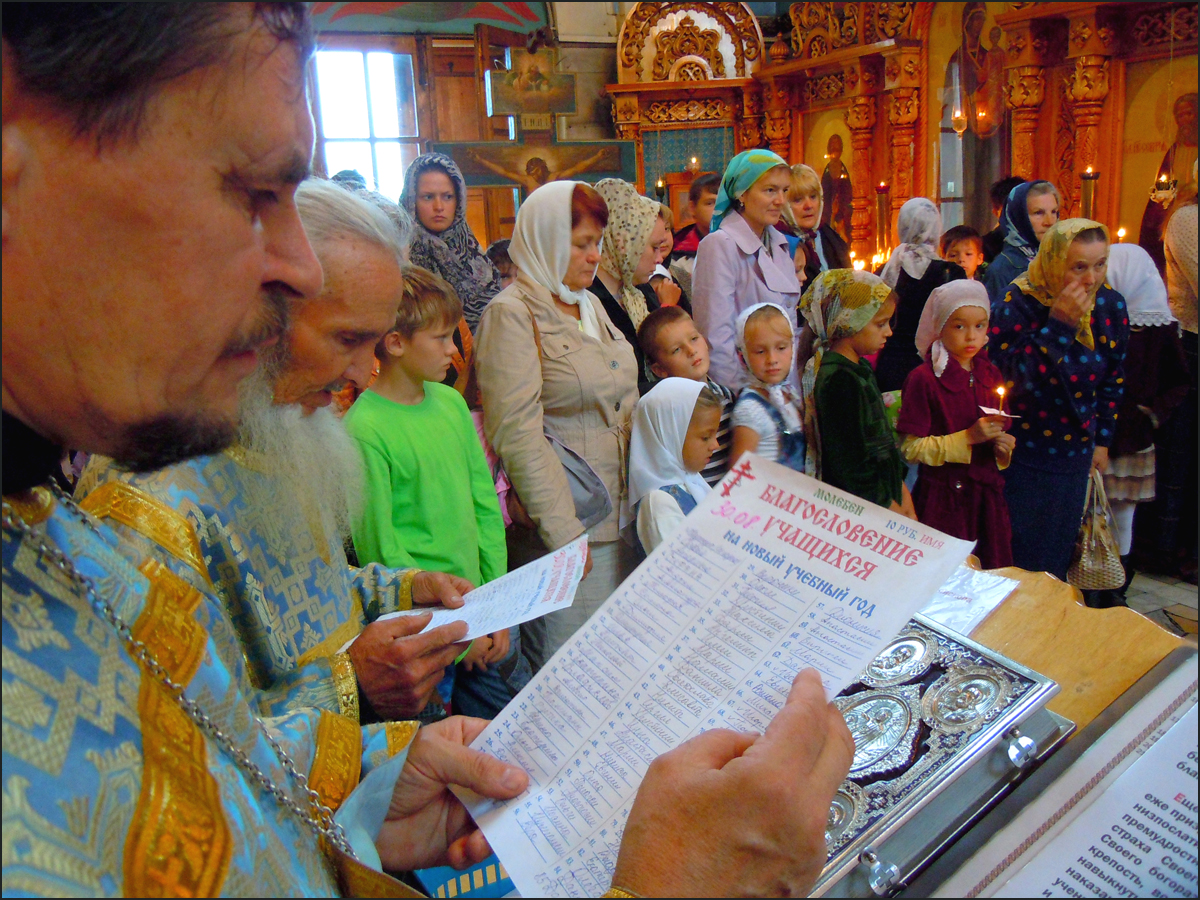 После главного православного богослужения – Литургии – клирики храма вместе с присутствующими вознесли соборную молитву к Подателю всех благ ниспослать «на отроков сих дар премудрости и разума, отверзети их уста, и просветити сердца их к приятию наказания добрых учений». На молитве присутствовали люди разных возрастов, но все присутствующие возлагали надежду на чудную помощь Божию в нелегком труде учения.