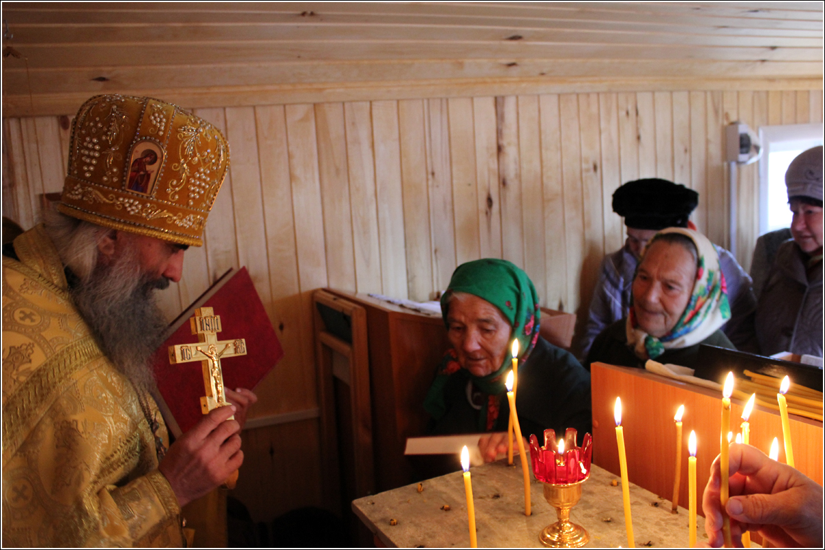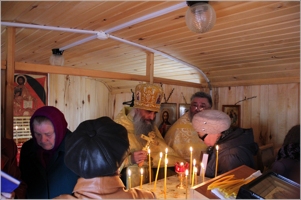 В небольшом, с виду неказистом храме-вагончике собралось множество верующих, многим не хватило места, но люди молились и на улице. Чувствовалась потрясающе благоговейная молитвенная атмосфера, ведь молитвословия возносились ко Господу на родном для селян языке. Двери храма были распахнуты настежь, но внутри было тепло и уютно.