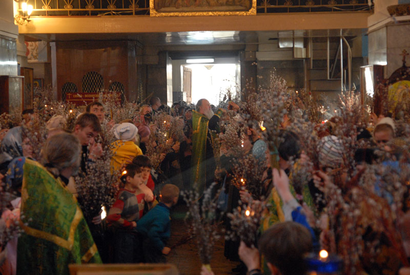 Фотогалерея празднования в Свято-Вознесенском архиерейском соборе дня Входа Господня в Иерусалим.