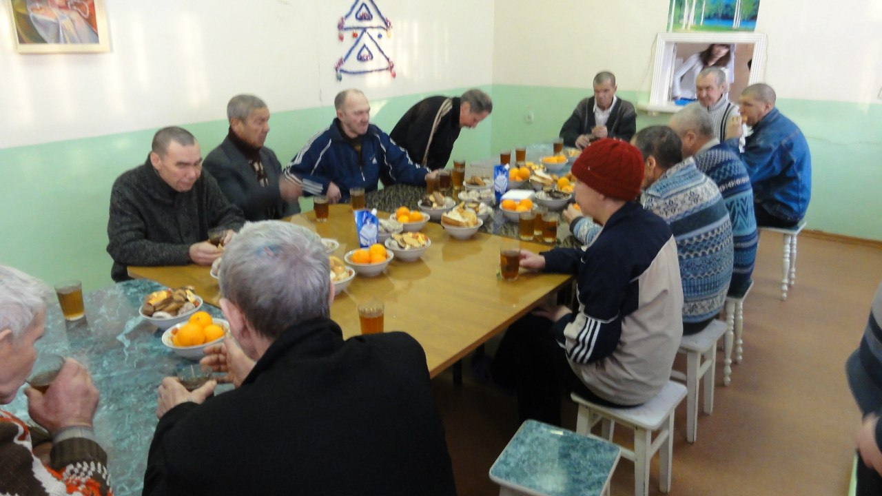 В заключение программы ребята все вместе исполнили заранее заготовленную рождественскую колядку «Эта ночь святая». В свою очередь от пребывающих в центре людей прозвучали ответные выступления с чтением стихотворений и рассказами о значении светлого праздника. После праздничного концерта всех присутствующих пригласили к столу для того, чтобы попить вместе чай и пообщаться. За чаем пребывающие в «Перекрестке» люди поведали ребятам свои жизненные истории, нелегкие судьбы, вспоминали о том, как строили храмы в свое время, как купались в Крещение в 40-градусный мороз, как работали дальнобойщиками и как жили.