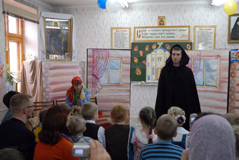 Для родителей был показан пасхальный спектакль под названием "Печаль-тоска". Несмотря на "печальное" название, спектакль был по пасхальному радостным и занимательным. Специально к празднику воспитанники Воскресной школы подготовили стенгазеты.