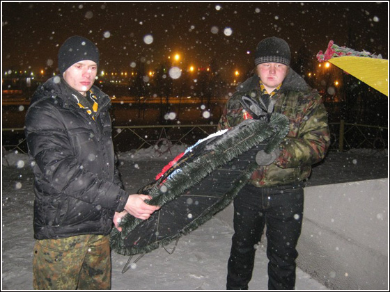 В день празднования одного из двенадцати главных праздников Православной Церкви – Сретения Господня и вывода Советских войск из Афганистана, активная православная молодёжь возложила венки к памятнику воинам-интернационалистам, который расположен в конце проспекта Р. Беляева в районе первой автодороги. Заручившись благословением иерея Георгия Опарина, клирика Свято-Вознесенского Архиерейского подворья, ребята собрались вечером, – венки заказали заранее на свои средства – и отправились к памятнику.